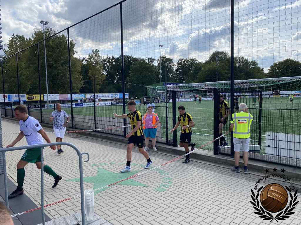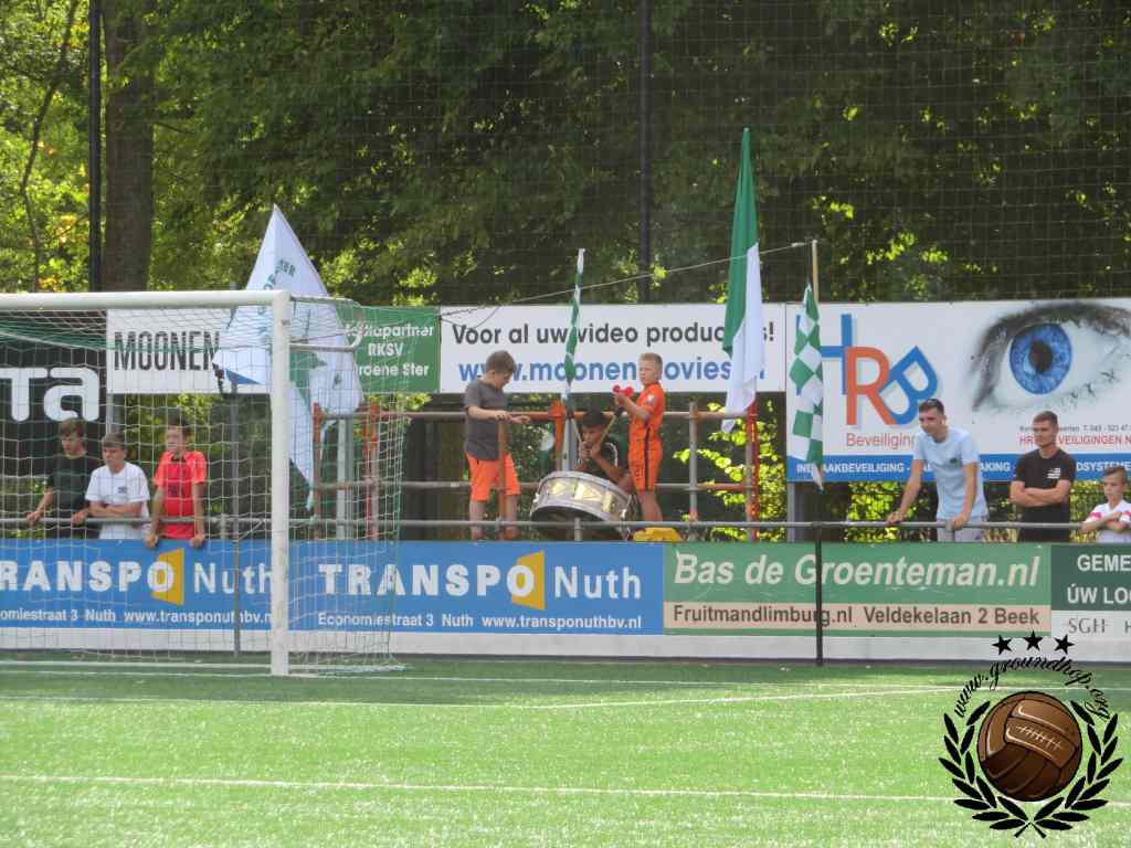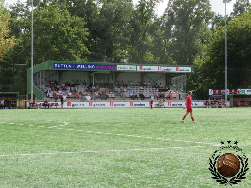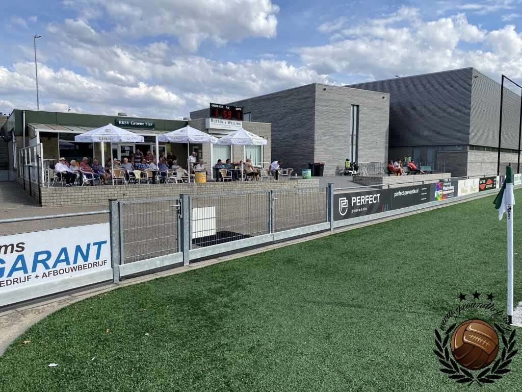 Ten opzichte van de spanning en restricties die we eerder op de dag in Maastricht hadden, is het hier bij Groene Ster absoluut een verademing. We pakken er een biertje bij (die weliswaar een stukje groter hadden gemogen) en ploffen neer op één van de bankjes die pontificaal naast het veld zijn geposteerd. Vanaf deze bankjes aanschouwen wij dat de gasten uit Berkel en Rodenrijs de bovenliggende partij zijn, voornamelijk door het energieke spel. De eerste keer dat wij opveren in de eerste helft heeft niets met voetbal te maken maar speelt zich af aan de zijlijn, waar een man op leeftijd bevangen wordt door de hitte. De stewards en een aantal supporters handelen gelukkig adequaat en zo is er geen extra zorg noodzakelijk.
