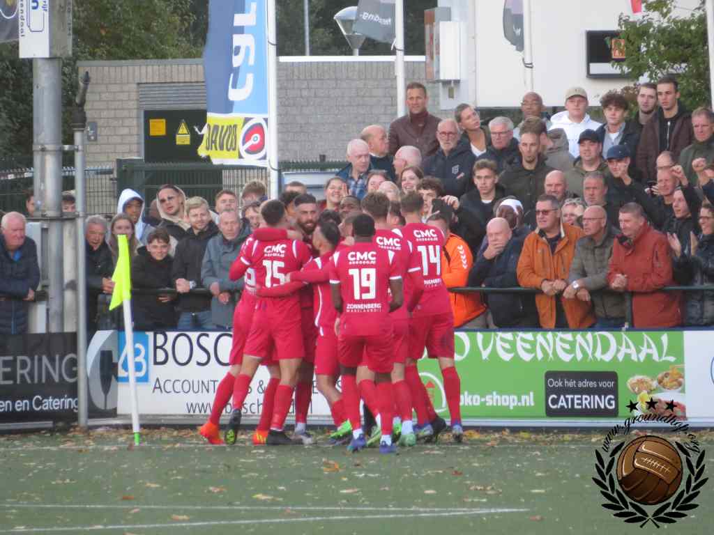 Het rustsignaal komt de gasten aanzienlijk beter uit dan de thuisploeg. Waar de Rooien tot de openingstreffer de bovenliggende partij waren, zijn na de twee doelpunten de Blauwen beduidend sterker. De rust was blijkbaar niet lang genoeg, want vlak na rust komt GVVV op voorsprong. Quincy Veenhof loopt simpel diep en schiet keurig binnen. Het verzet dat er nog was is dan ook meteen gebroken en lijkt de wedstrijd een prooi te gaan worden voor de thuisploeg. GVVV is vandaag een maatje te groot voor de buurman en loopt halverwege de tweede helft ook nog uit naar 3-1 via Byron Burgering.