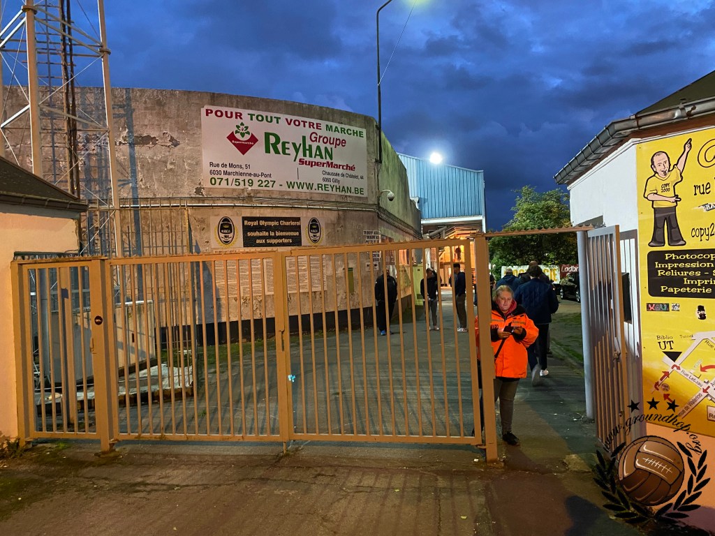 Nadat wij langer werden opgehouden dan nodig bij ons zoveelste bezoek aan Veenendaal, racen wij richting de tweede wedstrijd van de dag. Met een marge van een paar minuten komen wij aan in Charleroi, waar we vandaag een bezoek brengen aan de Royal Olympic Club de Charleroi-Marcienne. Onder de rook van Sporting Charleroi, ligt het prachtige Stade de la Neuville op ons te wachten. Gek genoeg worden we nog voordat we ons op de tribunes begeven al herkend, zo zie je maar weer dat onze reputatie ons voorbij begint te streven.