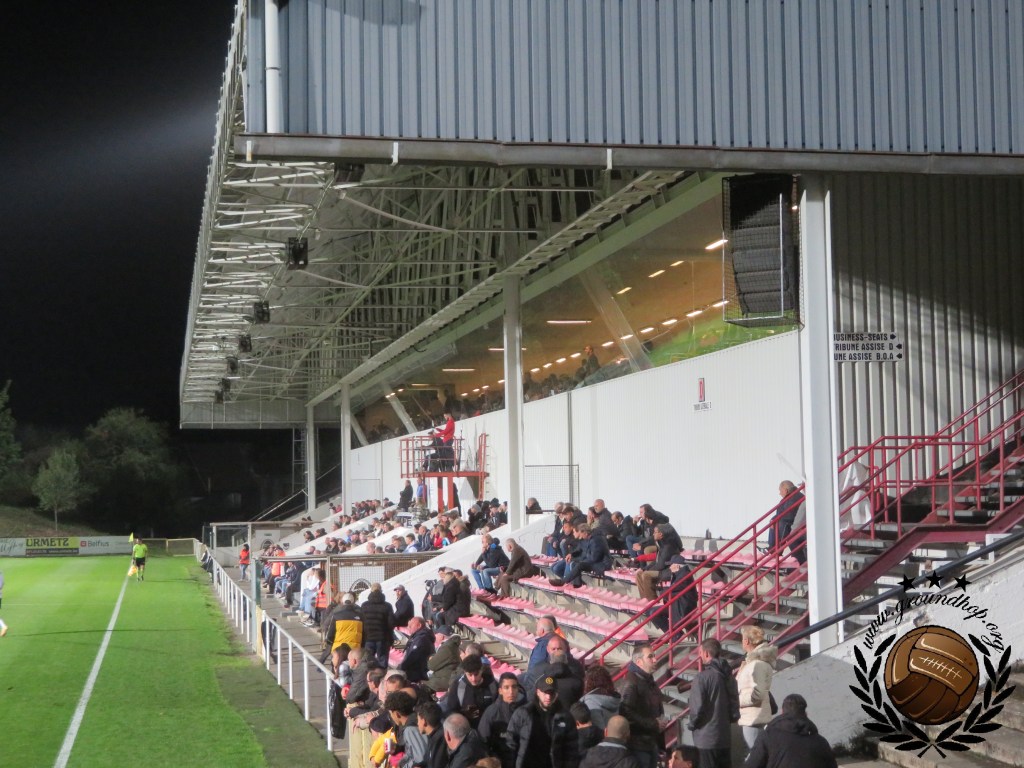 Olympic heeft voor dit Waalse onderonsje er slim aan gedaan om elk jeugdelftal erbij te betrekken, want anders hadden de gasten uit Luik met meer supporters aanwezig geweest dan de thuisploeg. Wij hebben inmiddels een biertje te pakken en nemen plaats op de staantribune aan de korte zijde, welke in onze optiek ook absoluut de mooiste tribune is van dit stadion. Bij de aftrap komen we tot de aangename verrassing dat Luik vocaal aanwezig is en dat de Olympic-supporters een lading blaasinstrumenten van stal haalt, waardoor wij ons voor even weer wanen in Argentinië.