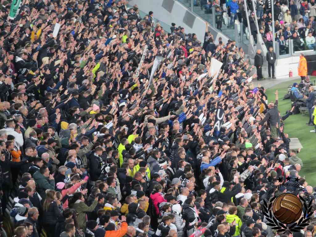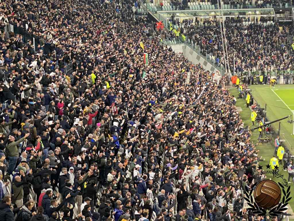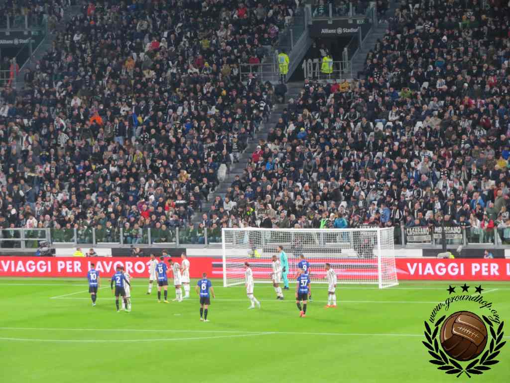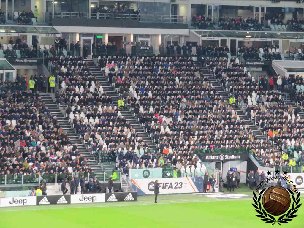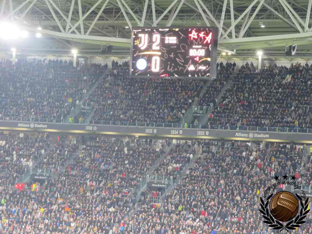Eenmaal binnen komen we al vrij snel tot de conclusie dat dit wel eens de saaiste wedstrijd van het hele weekend kan gaan worden, terwijl het toch echt de Derby d’Italia is. Van Drughi was het ons al bekend dat hier sinds 2019 geen actieve support is, aangezien toen alle leiders van deze groep zijn opgepakt. De hoop dat hier een alternatieve groep de plaats in zou nemen hebben we niet, aangezien er geen enkele uiting te zien is. Er is wel een groepje dat een poging waagt om sfeer te creëren, maar dit ebt meestal na een halve minuut weer weg. Ook roepen ze de neutrale toeschouwers verdacht veel op om te gaan staan of te springen, iets waar wij per definitie een broertje dood aan hebben.