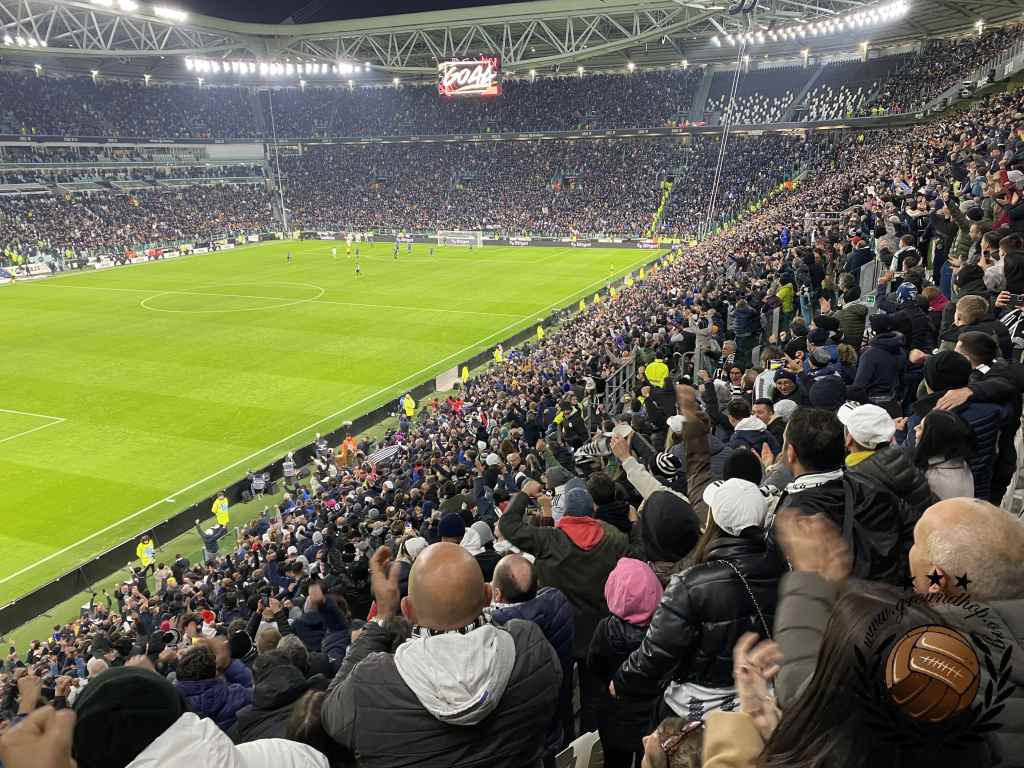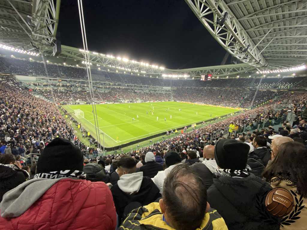 We lopen door en krijgen steeds meer mee van de pure commercie die ervan afdruipt bij Juventus. Eenmaal bij de juiste poort komen we achter de voordelen van dit moderne stadion, want ondanks dat er meer dan 40.000 man op de wedstrijd afkomt, staan we inclusief alle controles binnen twee minuten bij onze zitplaatsen. Ook het bestellen van eten en drinken is binnen een mum van tijd geregeld, de enige club die hier qua snelheid in de buurt kwam in 2022 is West Ham United in een eveneens hypermodern London Stadium.