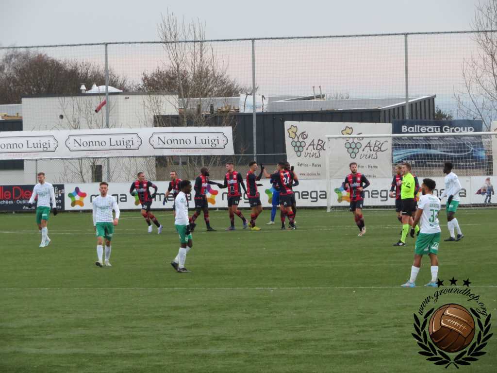 Onder een ouderwets gezellig Waals sfeertje, waar overigens echt iedereen een nicotineverslaving heeft, is het vlak voor rust Jesse Karma Mputu die de afgemeten bal van Perbet op waarde schat en de linkerbovenhoek weet te vinden. Hiermee lijkt de wedstrijd dan ook meteen gespeeld. In de rust proberen we nog een biertje te bestellen, maar helaas is ook hier het kaartensysteem actief en komen wij er met ons matige Frans niet uit om hier ook aan te komen.