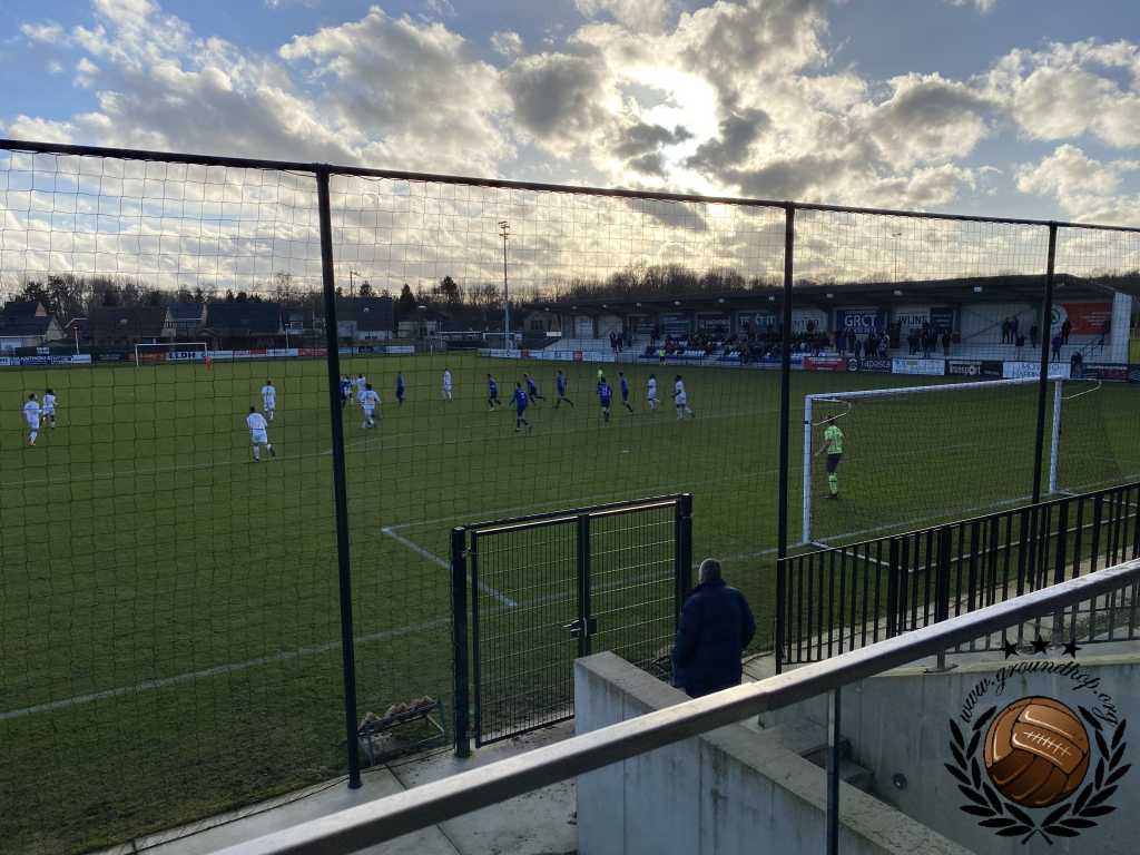 In het eerste volledige weekend van het jaar hebben we de smaak te pakken en besluiten we na ons bezoek aan FC Dordrecht nogmaals op pad te gaan. We koersen aan richting Nijlen, waar het degradatieduel tegen Sporting Kampenhout op het programma staat. De memo waar het parkeerterrein is hebben we helaas gemist, dus we parkeren de Ferrari in een woonwijk direct naast het complex. Dit ondanks de verschillende borden met het verzoek of we dit niet wilden doen, maar aangezien we met een marge van een paar minuten aankomen zijn we rebels. In ieder geval onze oprechte excuses.