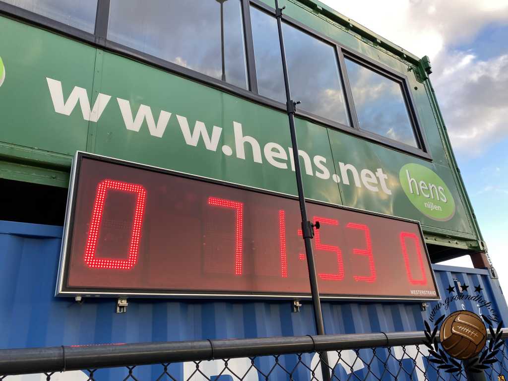 De zon is inmiddels achter wat wolken verdwenen en dat is voor ons het teken om een rondje langs het veld te gaan beginnen. We zetten het sportcomplex eens goed op de foto en kunnen gerust wat in het rond turen, want op het veld is het nog steeds niet heel verheffend. We komen tot de conclusie dat wij na anderhalve wedstrijd nog geen velddoelpunt hebben mogen noteren en beginnen er steeds meer in te geloven dat hier vandaag geen verandering al zal gaan komen.