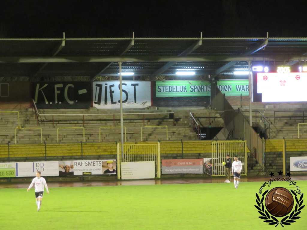 Zoals wel vaker de afgelopen periode, zijn we nogal last-minute aanwezig bij onze wedstrijden. Ditmaal parkeren we de Ferrari pal voor de bus van Zwarte Leeuw en betreden via de meest iconische poort het Warande Stadion. Tegen die tijd dat we om de sintelbaan heen zijn gelopen is het alweer tijd voor de aftrap en ploffen wij precies op het eerste fluitsignaal neer op zijn bank. We hadden ook niet veel later moeten zijn, want binnen twee minuten komen de gasten uit Rijkevorsel al op voorsprong via Faria de Silva. Na de overwinning van een week eerder tegen Olympia Wijgmaal lijkt het lek boven te zijn en ook hier wordt er fors gebeukt op de defensie van Diest. Het spel van Zwarte Leeuw is in het eerste kwart van de wedstrijd dik in orde, al ebt het naar mate de eerste helft vordert steeds verder weg en komt de thuisploeg in de wedstrijd. Ondanks dat de wedstrijd inmiddels in evenwicht begint te raken, vinden er geen veranderingen plaats op het scorebord. De thuisploeg heeft zich in de winterstop versterkt met onder andere Guus Hupperts, maar het blijft armoe troef. De kansen worden op het stroeve veld steeds groter, maar Diest krijgt het niet voor elkaar om de muur van de gasten te slechten.