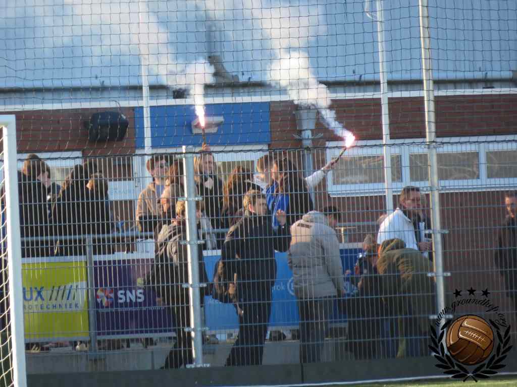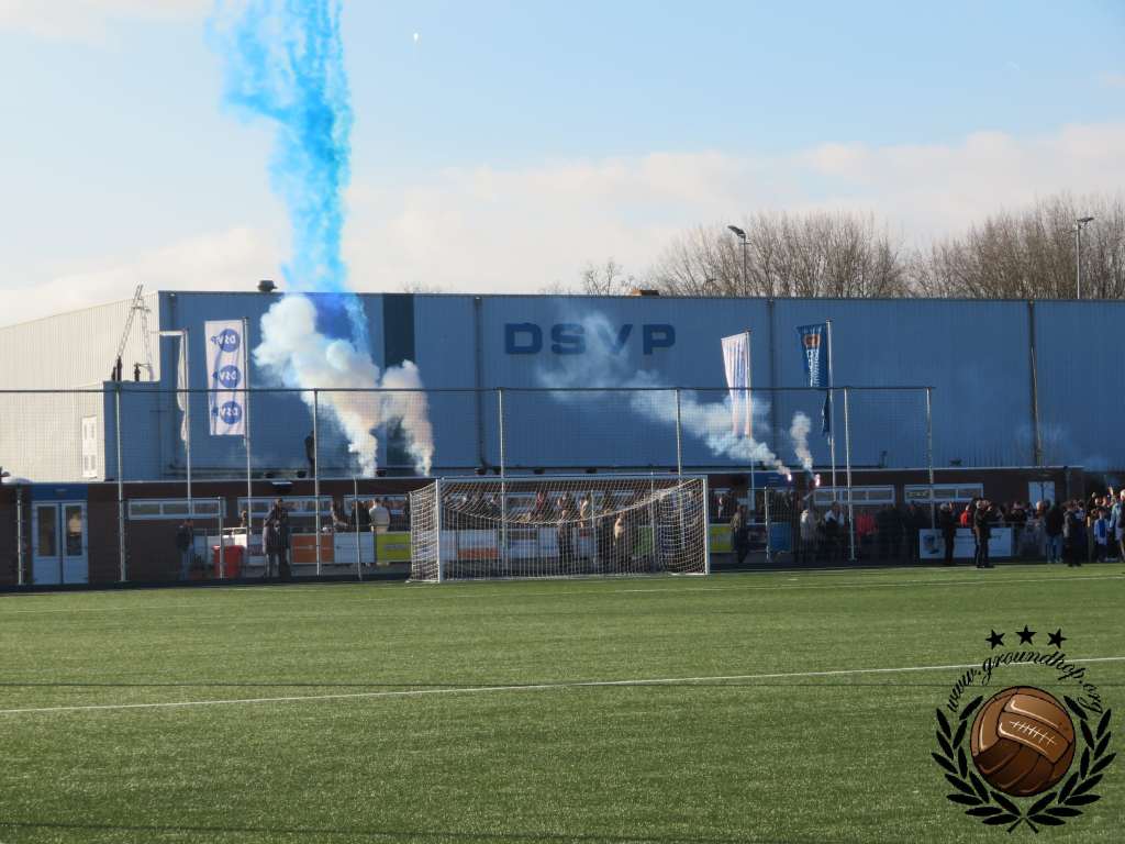 Verwachtingen die eigenlijk niet helemaal uit zijn gekomen helaas. Zowel op als naast het veld was het vrij matig. Aan de zijde van DSVP werden er wat rookpijlen de lucht in geschoten, maar dit ging niet tegelijk waardoor het echte effect uitbleef. Ook Oliveo had slechts enkele fakkeltjes bij zich.