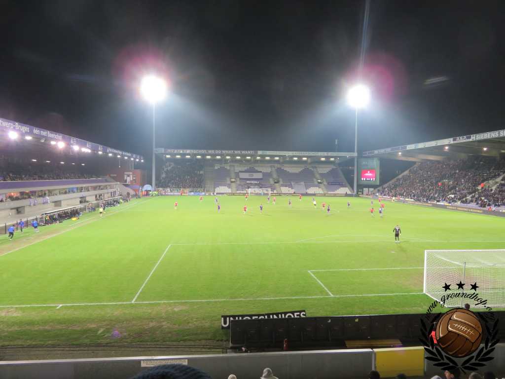 Na ons bezoek aan Maccabi Antwerpen is het tijd om ons anderhalve kilometer te verplaatsen voor de hoofdmaaltijd van de dag. Acht jaar geleden waren wij er voor het laatst, maar inmiddels zijn ze bij Beerschot uiteraard alweer gewijzigd van naam en stamnummer. In 2015 zagen wij KFCO Beerschot-Wilrijk voetballen tegen de City Pirates in de 4e Nationale onder stamnummer 155. Vandaag zijn wij aanwezig bij Koninklijke Beerschot Voetbalclub Antwerpen, oftewel K. Beerschot VA dat onder stamnummer 13 thuis speelt tegen RWD Molenbeek. Het stadion is gelukkig dan wel weer hetzelfde gebleven, dan hebben we tenminste nog iets waar we op kunnen bouwen.