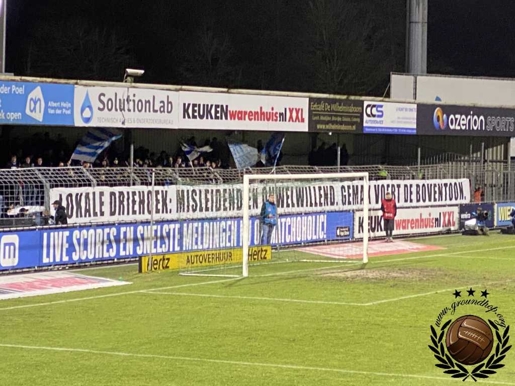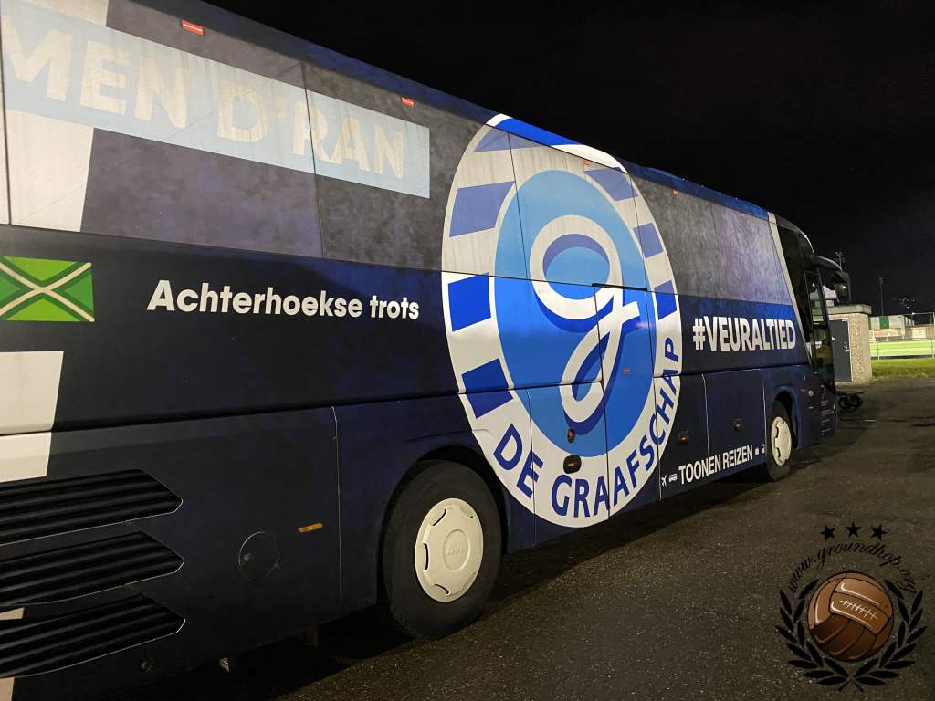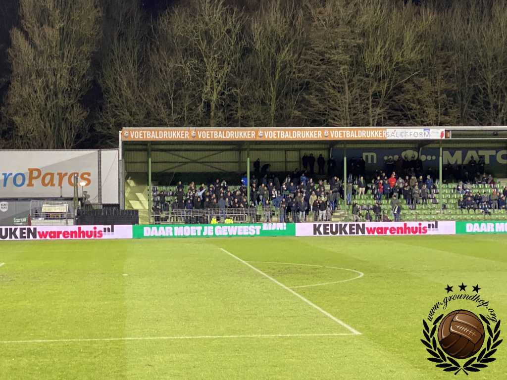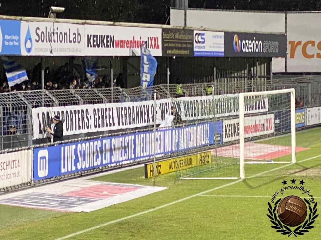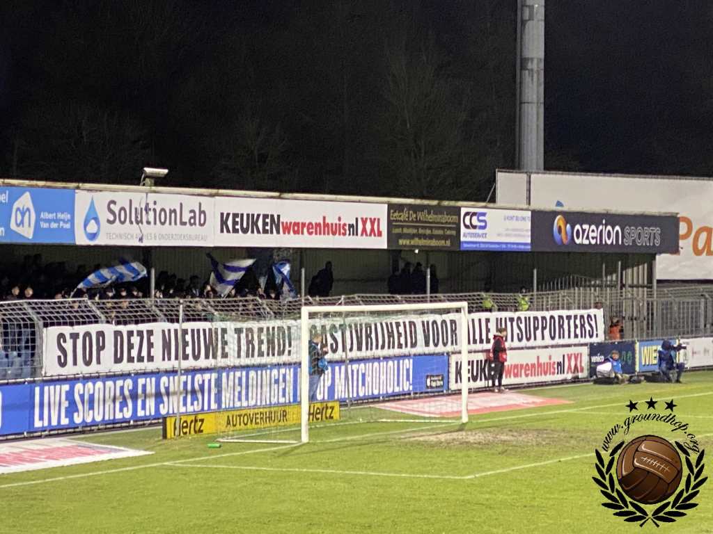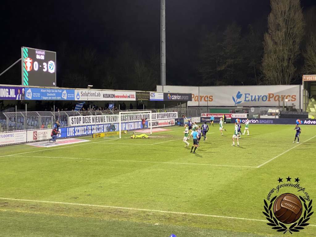 De gasten uit Doetinchem maken nog kans op een periodetitel, al is deze kans vrij nihil. Zowel Almere City als NAC Breda moeten een makkelijke wedstrijd verliezen en dan maakt De Graafschap nog aanspraak op de periode. Eenmaal gearriveerd blijkt dat het in Almere wel is afgelast vandaag, waardoor er sowieso geen beslissing zal vallen. Ondanks deze last-minute teleurstelling zullen er per definitie niet al teveel supporters uit Doetinchem komen buurten, aangezien de lokale driehoek in Dordrecht met een berg restricties komt. Ondanks dat wij ons niet kunnen heugen dat het ooit is misgegaan tussen deze clubs, worden ‘recente incidenten’ aangedragen als reden voor deze restricties. Degenen die wel aanwezig zijn uit Doetinchem, zorgen vandaag voor de sfeer. Veel kunnen ze niet zien, want voor het uitvak hangt erover de hele breedte continue een protestdoek.