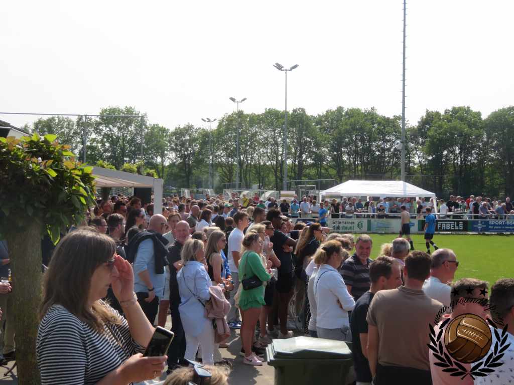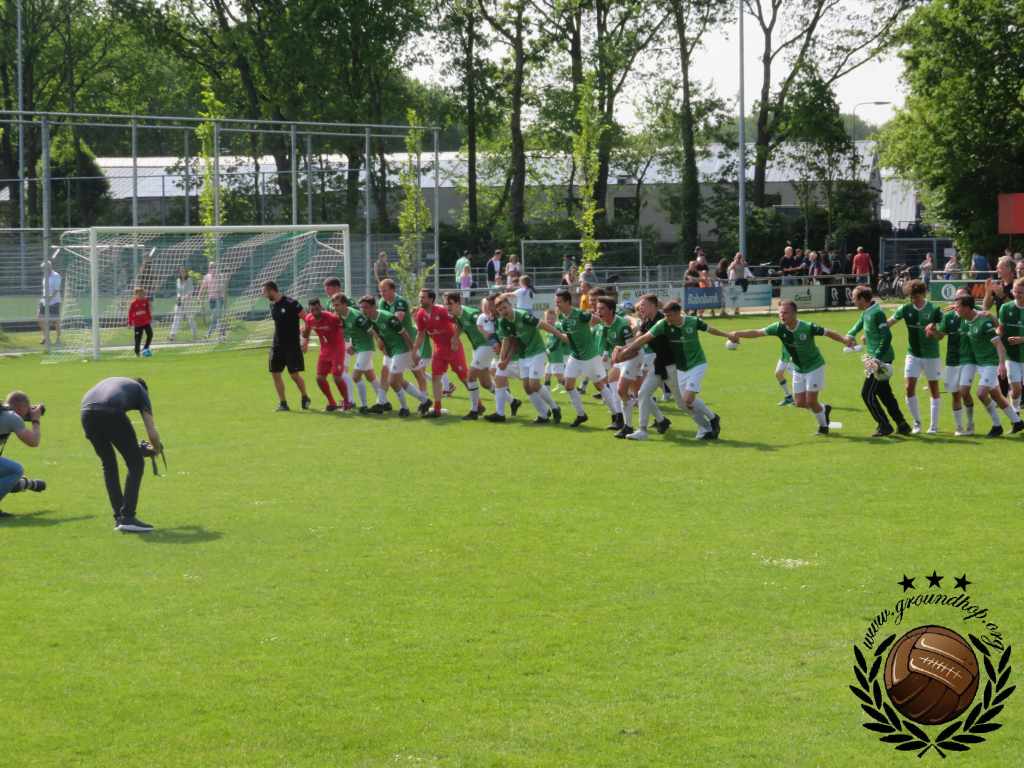 Meestal gaat een play-off of een kampioenschapswedstrijd gepaard met het nodige vuurwerk. In dezelfde periode een jaar eerder lukte het zelfs om een streak van negen wedstrijden met pyro neer te zetten. We hadden gehoord dat de paarden van de manege verderop al op hol waren geslagen van het vuurwerk een thuiswedstrijd eerder, dus met goede hoop melden we ons op Sportpark De Roosberg. Met zomerse temperaturen mag een biertje natuurlijk niet ontbreken en we positioneren ons om de pyro eens goed op de foto te zetten. Wat blijkt, vandaag blijft het vuurwerk achterwege. We hebben de enige kampioenswedstrijd zonder vuurwerk weten te vinden, daar zijn we weer mooi klaar mee.