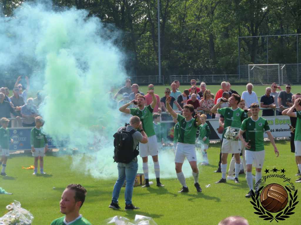 In de tweede helft lukt het de gasten uit Terheijden niet meer om een vuist te maken en de kurk kan hierdoor in Bavel langzaam van de fles gehaald worden. De tweede helft is een prooi voor Niek Akkermans, die zowel de 2-0 als de 3-0 laat aantekenen. Vlak voor tijd kan hij voor zijn hattrick gaan, maar hij gunt de bal aan een medespeler die hem alleen nog maar over de lijn hoeft te tikken. De 4-0 valt al richting de blessuretijd en de nodige bloemen worden alvast gepakt. VV Bavel is kampioen en viert dit met bier en bloemen. O ja, de spelers zelf hadden wel wat vuurwerk meegenomen. Zo beginnen wij vandaag toch nog aan onze jaarlijkse streak met vuurwerk.
