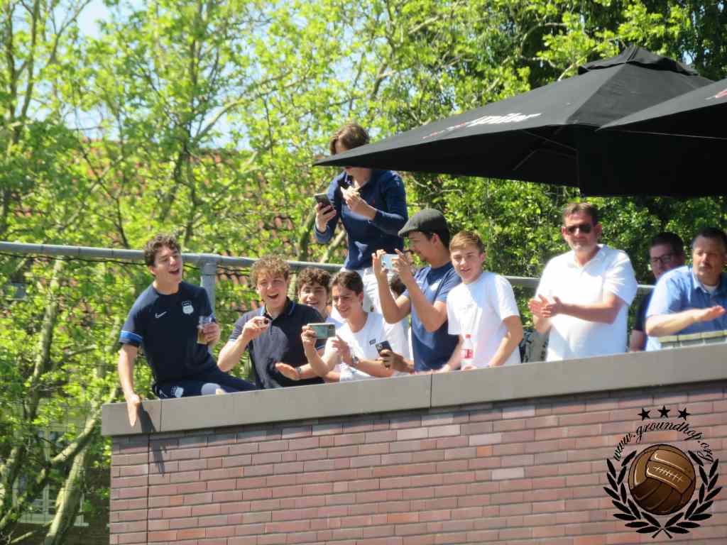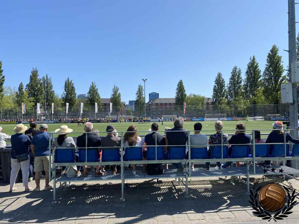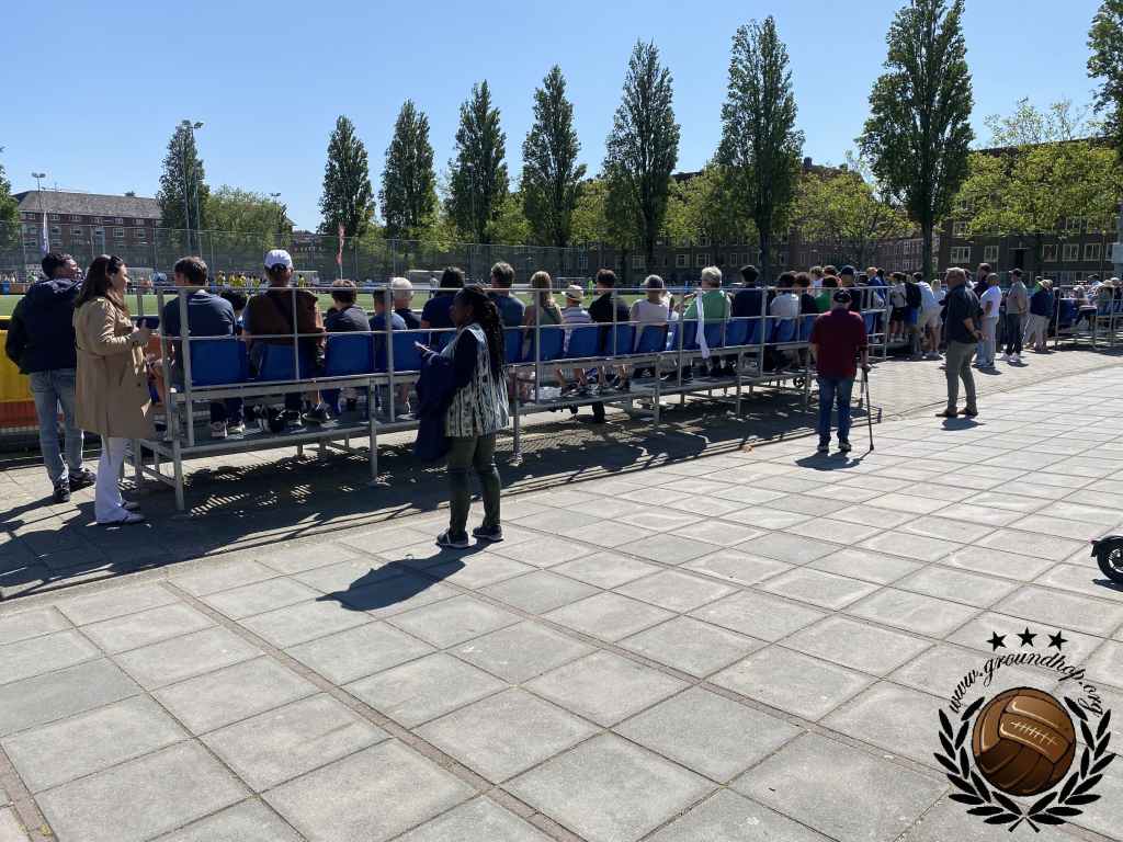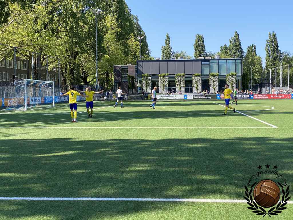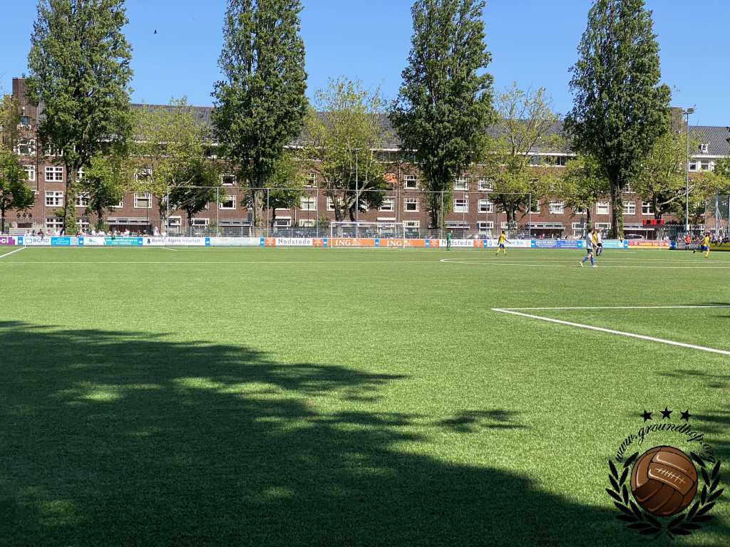 Deze Amsterdamse vereniging straalt net zoals de wijk waarin het gelegen is uit dat er verdacht veel geld te bekennen is. Alles ziet er gelikt uit, misschien voor een voetbalvereniging wel iets te gelikt. Neemt niet weg dat wij zelf stiekem ook wel een beetje op stand leven, dus (naast dat we in Amsterdam zijn) voelen we ons best wel thuis. Daarentegen is bier langs de lijn dan weer verboden en staat het terras ramvol, waarvoor het kijken van deze wedstrijd met de zon op je knar in ieder geval zonder alcohol moet verlopen. We schakelen snel over op een goed hydraterende versnapering en melden ons langs de lijn.