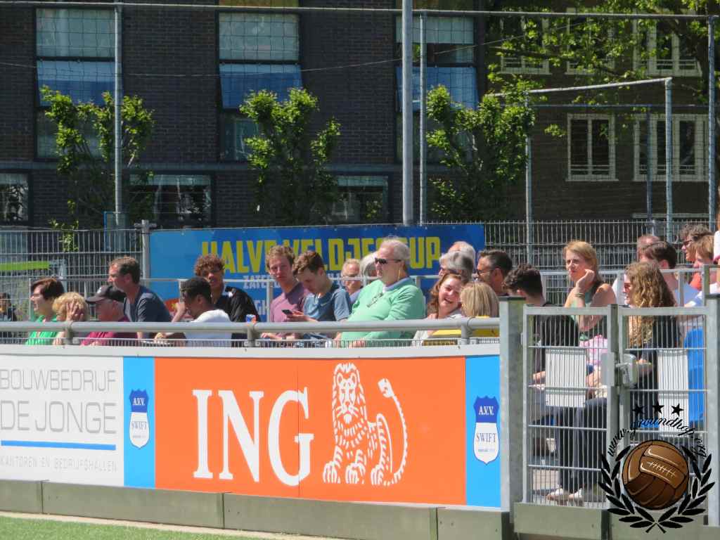 Na een aantal ontknopingen op lagere niveaus mee te maken is vanaf vandaag dan eindelijk tijd voor het toetje van het seizoen. In de play-offs is er altijd kans dat ploegen die elkaar anders nooit zien, elkaar opeens tegenkomen maar bovenal staat er altijd iets op het spel. Dat is vandaag niet anders, wanneer AVV Swift op eigen terrein een mager uitgevallen 3-2 nederlaag tegen ODIN’59 probeert weg te poetsen. Via een omweg via wat stations melden wij ons op Oud-Zuid, waar we geen enkele kans maken op vrij parkeren dus we nog voordat we het sportpark oplopen al flink in de buidel moeten tasten.