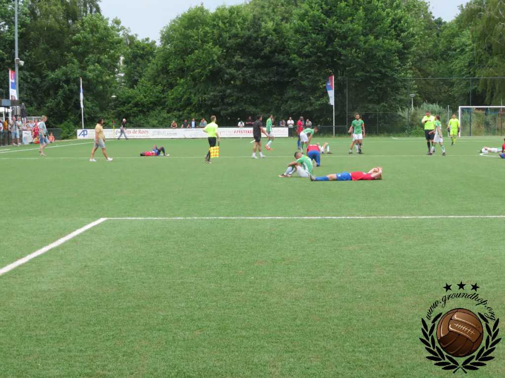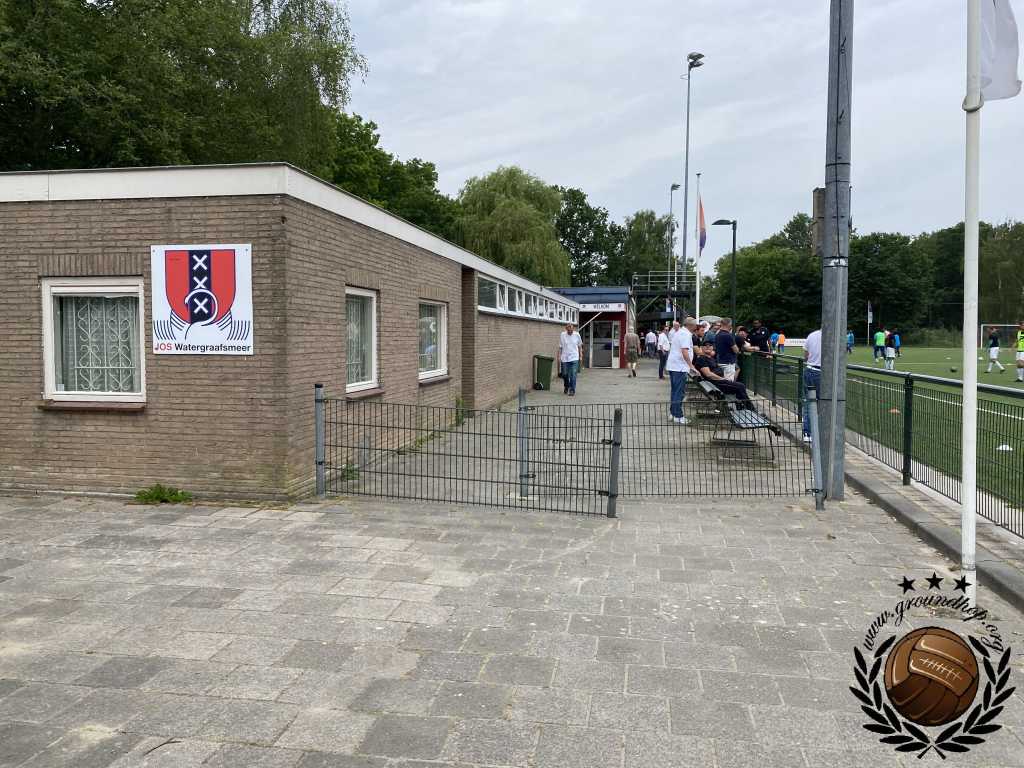 Ten opzichte van het bezoek aan Swift kan het verschil met JOS bijna niet groter zijn. Waar op Oud-Zuid alles tiptop in orde was op het sportpark, zijn we er in Watergraafsmeer al snel achter dat alles van ellende in elkaar lijkt te storten. Toch durven we het aan om de kantine in te duiken, waar we met Affligem op de tap dan wel weer vrolijk zijn gestemd. Deze kunnen we in alle rust opdrinken, want de wedstrijd begint met een kwartier vertraging vanwege de administratie die niet op orde was.