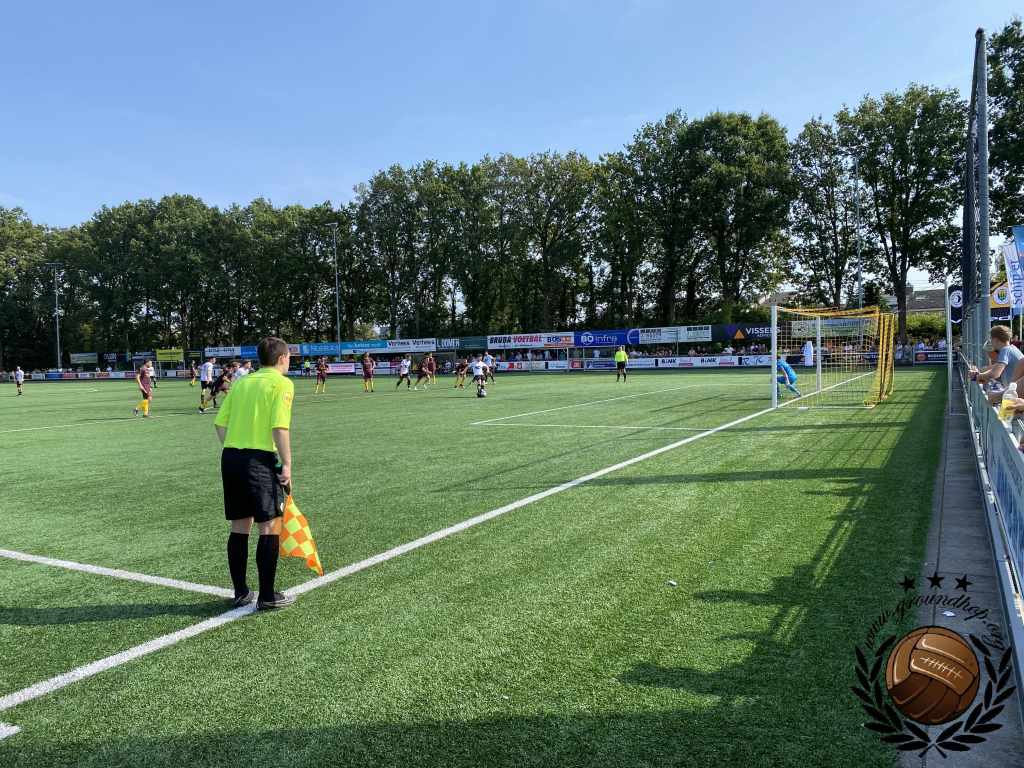 Ondanks een kans voor de gasten, duurt het niet lang totdat de verhoudingen vandaag duidelijk zijn. Bas Rockx opent de score met een mooie vrije trap, al had de muur wel wat weg van een gatenkaas. Ook de 2-0 van Danny Lauwen valt uit een standaard spelsituatie en zeker gezien de verhoudingen op het veld lijkt de wedstrijd hiermee al vrij snel gespeeld te zijn.