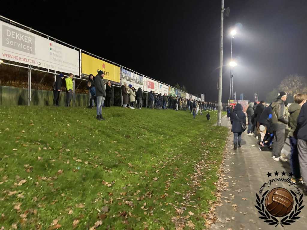 In de rust duiken we snel de kantine in om even op te warmen om ons snel weer te melden voor het tweede bedrijf. Hierin gebeurt al vrij snel waar iedereen vandaag bang voor was. De scheidsrechter is na een aantal omroepen nu echt klaar met het knalvuurwerk en legt de wedstrijd (gelukkig tijdelijk) stil. De spelers zijn het er ook niet echt mee eens, want die gaan niet naar binnen maar houden gewoon een extra warming-up. Als er eenmaal weer gevoetbald mag worden van de leidsman komt Ede nog op gelijke hoogte, wat op basis van wat we hebben gezien ook het eerlijkst is.