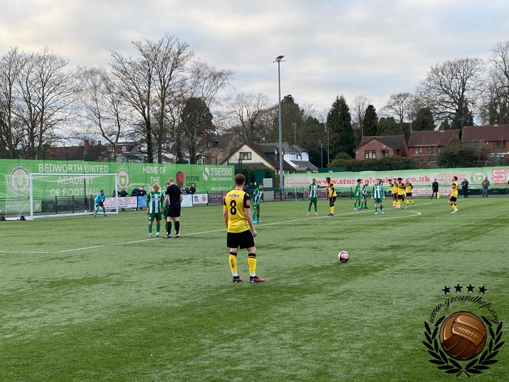 Ook dit seizoen speelt Bedworth weer geen opvallende rol. Ze bivakkeren keurig in het midden van de ranglijst. Geen degradatiestress, waar ook zeker geen hoop op promotie. Dat is voor de gasten van vandaag wel anders. AFC Rushden & Diamonds uit Wellingborough, staat met 4 punten uit 21 wedstrijden, stijf onderaan. Het mag dan ook best verrassend genoemd worden dat de gasten, na vroeg op achterstand te zijn gekomen, zich terug weten te knokken in de wedstrijd. Na vier minuten kwam Bedworth al op voorsprong via Kory Burke. Echter had Rushden eveneens vier minuten nodig om weer op gelijke hoogte te komen.