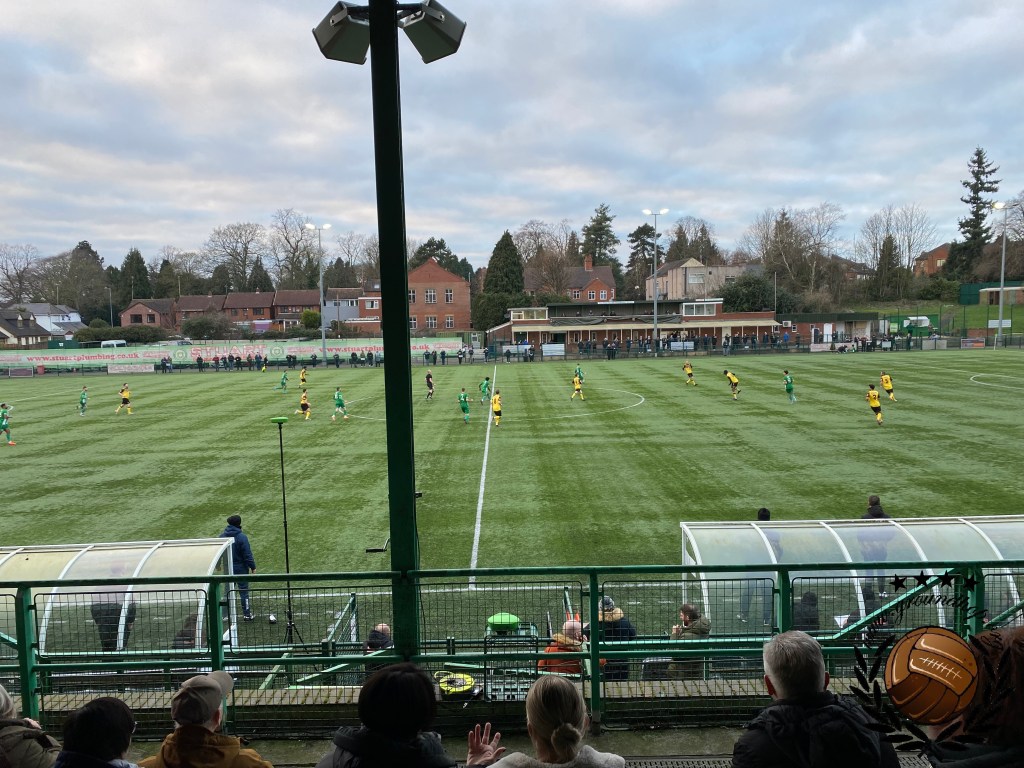 Na de festiviteiten in Coventry is het tijd voor de volgende pot. We lopen een kleine kilometer vanaf de CBS Arena en pakken daar de bus op richting Bedworth. Een kleine tien minuten later stappen we voor het stadionnetje uit en nog voor de aftrap staan we langs het veld.