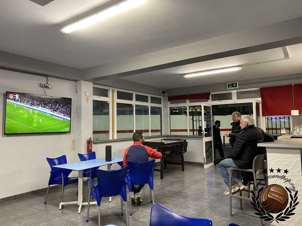 Na een paar uur geleden al present te zijn geweest bij de ontmoeting tussen College 1975 en Lynx FC in het Victoria Stadium, is het natuurlijk een kleine moeite om te blijven hangen tot de volgende wedstrijd op dit sportpark. We overbruggen het uurtje in de kantine van het stadion, waar we Real Madrid gehakt zien maken van Girona. Afkijken kunnen we het niet, want de Lincoln Red Imps en Europa Point komen al bijna het veld op.