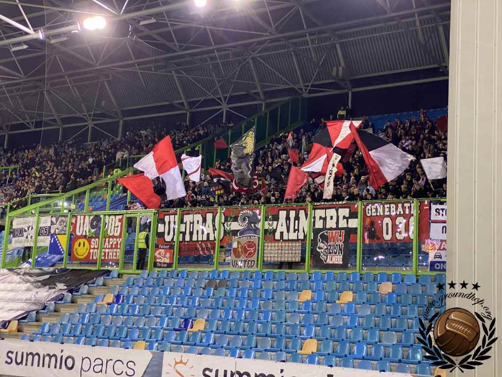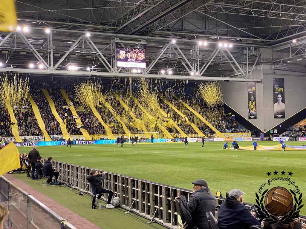 Een recordaantal bezoekers zijn afgekomen op deze rammer. Dit voornamelijk door vele ticketacties en zowaar lijkt het GelreDome vanavond aardig gevuld. Nou hadden wij geen weet van deze acties, maar dat we 18,50 per ticket neertellen op de lange zijde getuigt er nou niet van dat Vitesse de wind in de zeilen heeft dit seizoen.