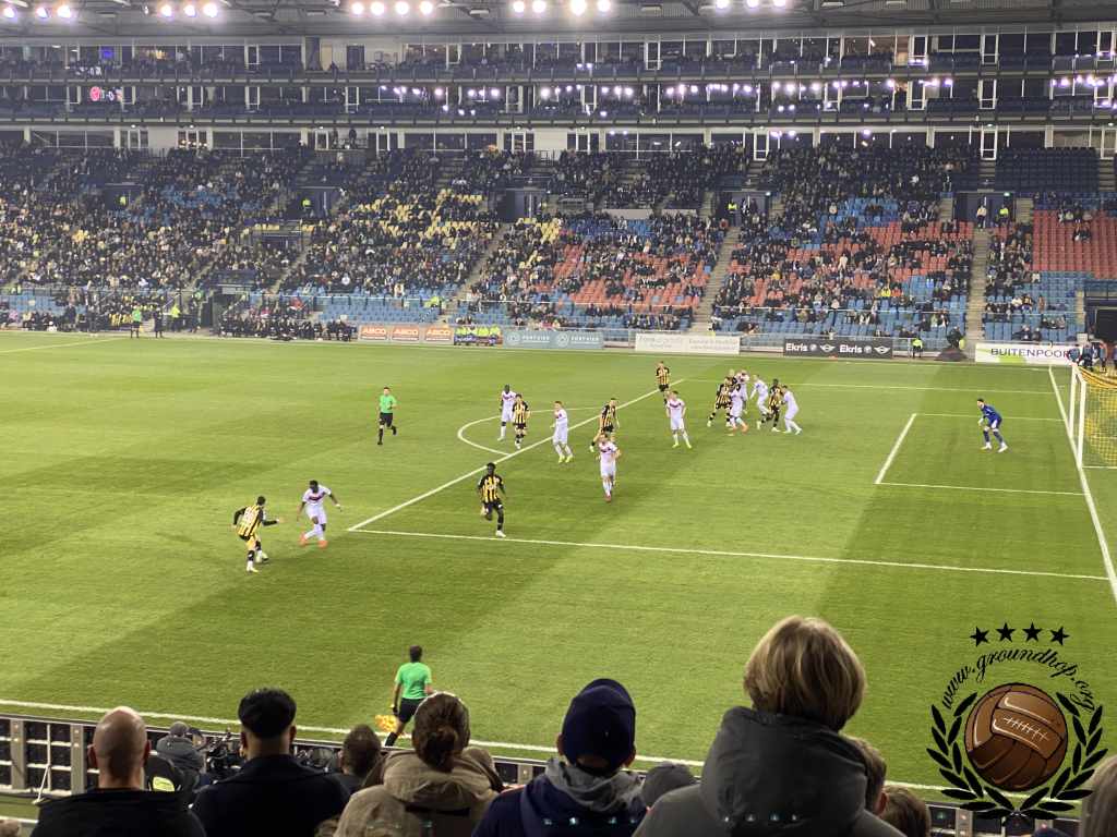 Na twee wedstrijden in de Vierde Divisie D te hebben bekeken, is het weer eens tijd voor een potje in de Eredivisie. We lopen vanaf MASV de Batavierenweg over en na een meter of 100 bevinden we ons bij de poorten van het Gelredome. Gelukkig zit het dak dicht, want inmiddels is het bijna afgekoeld tot het vriespunt.
