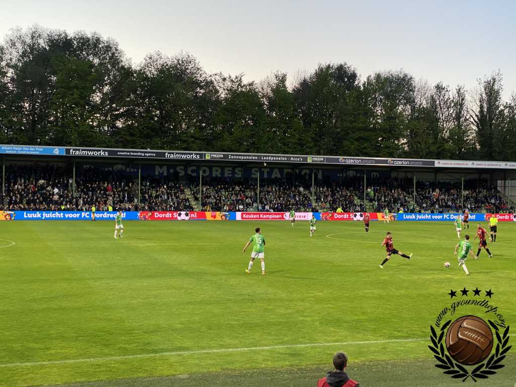 Na jaren van misère en ellende is Dordrecht uit een diep dal omhoog gekropen. Onder leiding van enkele Rotterdamse talenten zijn ze nog vol in de race voor een periode titel. Ook zijn ze al verzekerd van een play-off plek. Het GN Bouw-Stadion, Riwal Hoogwerkers Stadion, Matchoholic Stadion, M-Scores Stadion aan de Krommedijk is dan ook vrijwel uitverkocht vanavond. Het stadionnetje in Dordt veranderd vaker van naam dan de gemiddelde Belgische fusieclub.