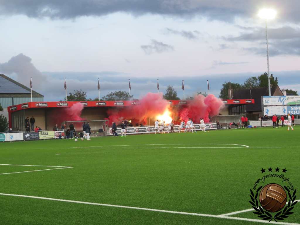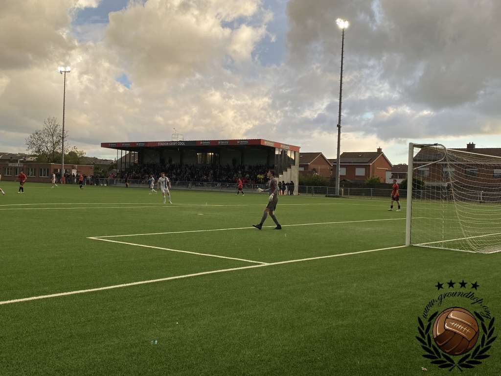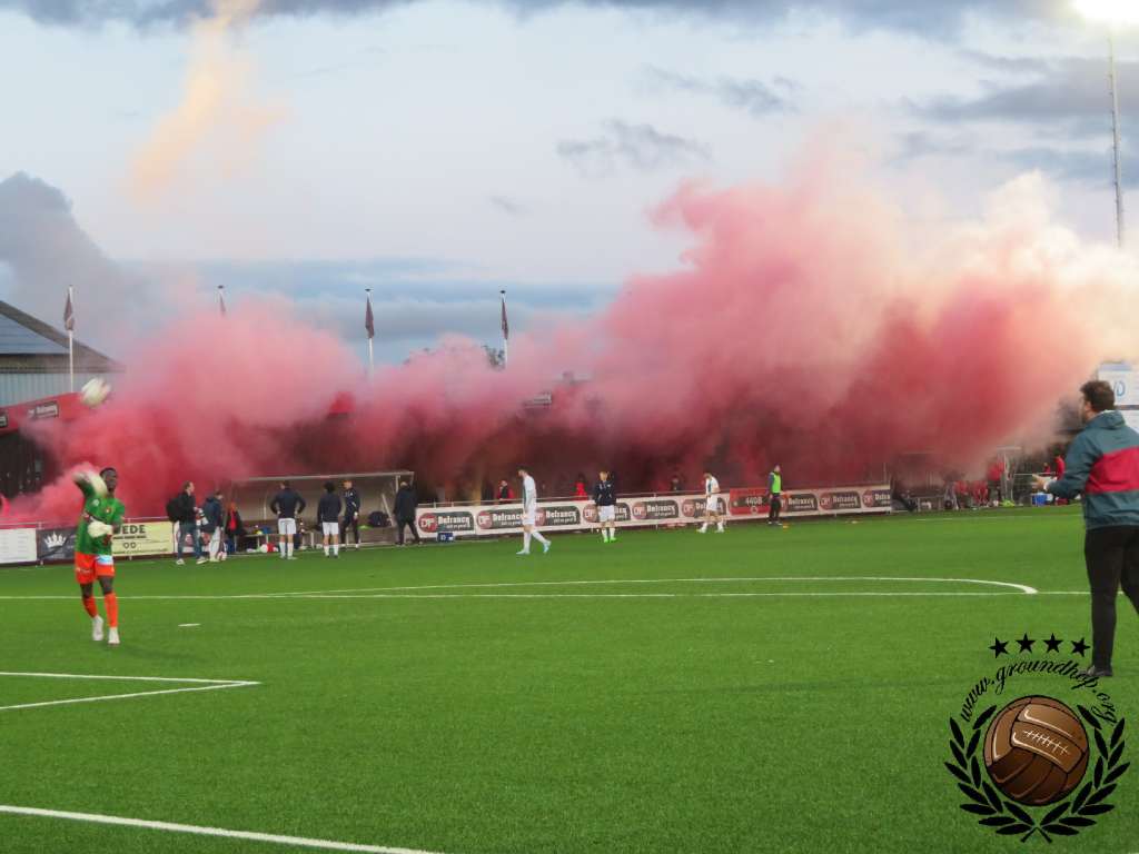 Bij de aftrap worden er wat confettikanonnen afgevuurd, maar we zien al vrij snel een tas liggen met de nodige pyrotechnische materialen. Daarover later meer. De ploegen zijn vrij aan elkaar gewaagd, maar het is voor een wedstrijd waar er amper iets op het spel staat verdacht hard. De gasten uit Tienen zouden in potentie nog veroordeeld kunnen worden dat een degradatie play-offs, maar dan moet Union Namur en Royal Antwerp II alles winnen en Tienen nog alles verliezen. Daarnaast moet er dan ook nog een doelsaldo van +16 overbrugd worden, al is het in België nooit helemaal duidelijk wat de criteria zijn. De gasten voetballen dus nog wel ergens voor, maar dat de thuisploeg zich laat meevaren in het stevige spel is toch wel enigszins onverwacht te noemen. Hard is het wel, maar goed allerminst. De gasten zijn ietsje kansrijker, maar een 0-0 stand is een zeer logisch gevolg op basis van de eerste 45 minuten.