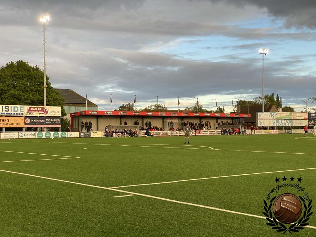 Het eerste wat ons opvalt is dat er geen entree wordt gevraagd, iets wat in België echt nooit gebeurd. Daarnaast is het ook gewoon goed druk. We staan stipt om 20:00 langs het veld, maar het blijkt dat we wel iets rustiger aan hadden kunnen doen. Er vinden eerst nog de nodige huldigingen plaats, waaronder die van Geert Cool. De oplettende lezer had al gezien dat het stadion zo heet, dat wordt hem nu dus terplekke verteld onder begeleiding van veel bombarie.
