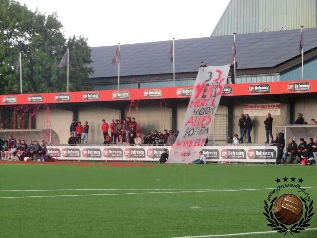 De beste man is ook meteen de hele oorzaak waarom er in Sint-Eloois-Winkel überhaupt op dit niveau gespeeld kan worden. Vrij vroeg in dit seizoen heeft hij aangegeven dat hij 33 jaar dienst gaat stoppen als voorzitter van deze vereniging, waardoor ook meteen de financiële middelen zullen verdampen. Waar hier in Sint-Eloois-Winkel de limiet bereikt is, verwacht Geert zijn nieuwe uitdaging te vinden in SK Roeselare, een club die ook inderdaad meer potentie moet hebben. Vandaar dat het ook zo druk is vandaag, want er wordt voor het laatst op het derde niveau van België gespeeld.