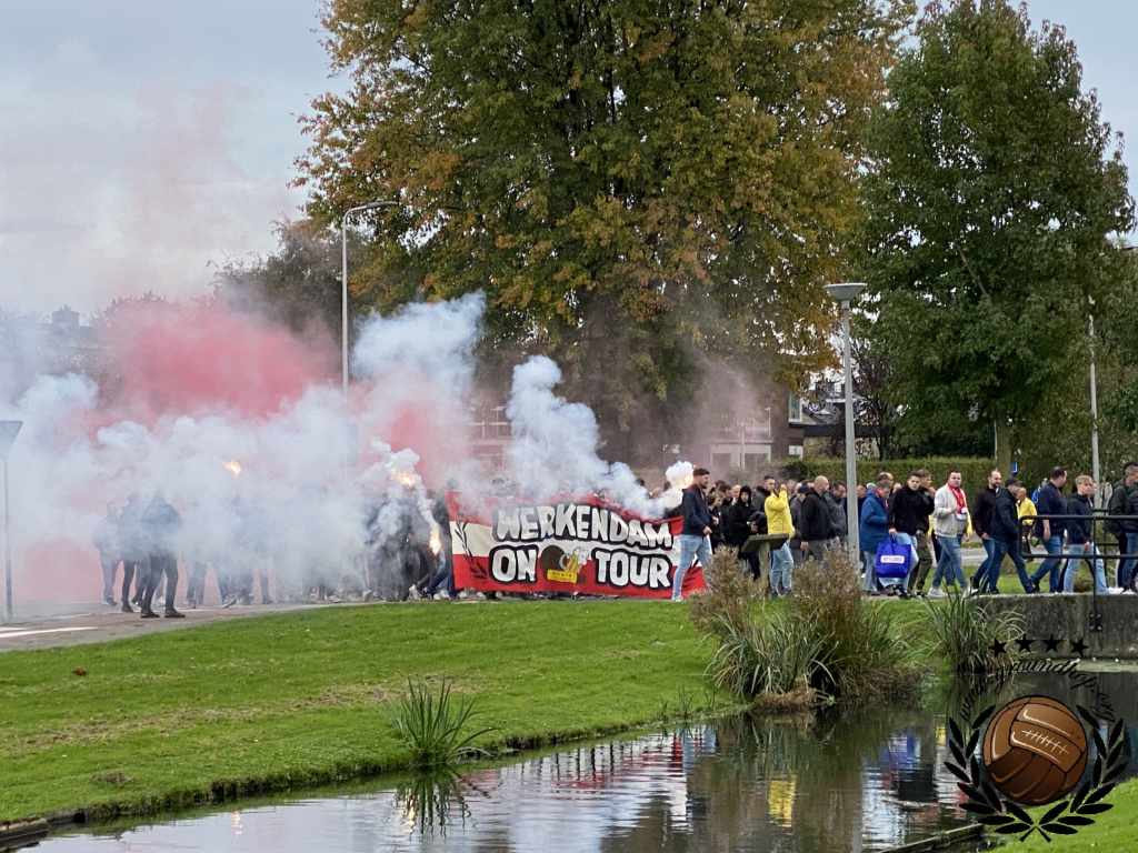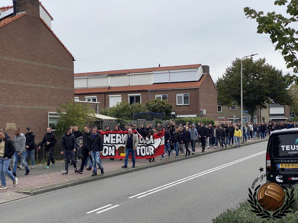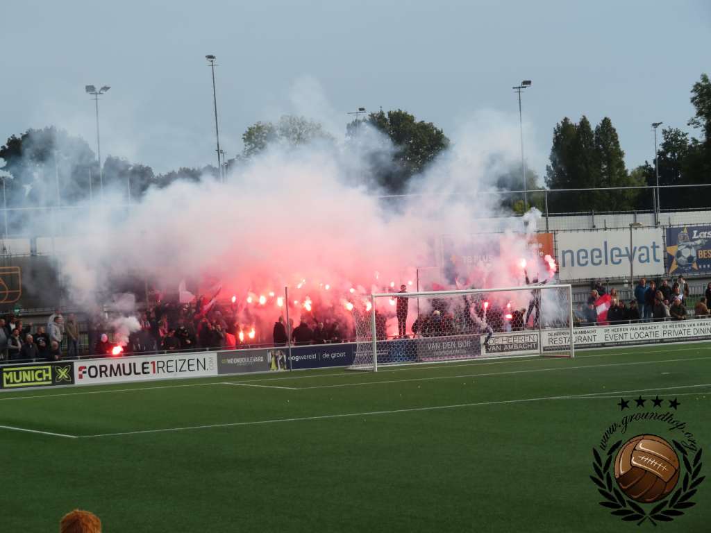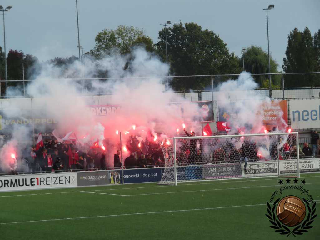 De aanhang van Kozakken Boys komt vanmiddag per bootcombi naar Hendrik-Ido-Ambacht. Ruim 300 man is de Beneden Merwede af komen varen per boot en lopen in een corteo door het normaliter zo vredige Ambacht. Met gezang en een hoop vuurwerk zorgen ze onderweg voor een hoop verbaasde gezichten. De sfeer is goed en dit blijf ook op het sportpark het geval. De wedstrijd begint wat later door een redelijk strenge toegangscontrole, maar deze blijkt niet het gewenste effect te hebben gehad. Bij de opkomst laat de Q-Side zien dat er meer dan voldoende vuurwerk alsnog naar binnen is gesmokkeld en zorgen ze voor een prima pyroactie.