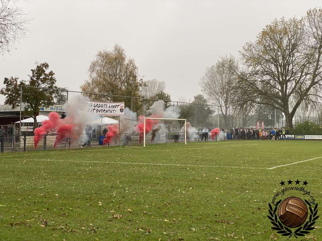 De derby begint met een spectaculaire sfeeractie van de zijde van Groote Lindt. Rood en witte rook, met aardig wat fakkels zorgen voor een fraai begin van deze derby. Ook Pelikaan heeft een sfeeractietje, maar die valt wat in het niet bij het geweld aan de Rood-Witte zijde. Voor Pelikaan is “de derby” dan ook het duel met VVGZ. Clubs als Groote Lindt en ZBC speelden altijd enkele divisies lager.