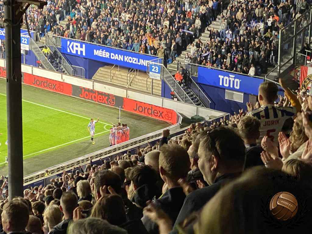 Het begin van de wedstrijd voldoet in ieder geval aan onze verwachtingen. Binnen vier minuten ligt de bal al in het netje voor de Friezen. Wij gaan er goed voor zitten en onze hoop op een mooie avond wordt aangewakkerd. Niets is echter minder waar. Na de goal stort de wedstrijd werkelijk als een plumpudding in elkaar. Alles gaat mis, aan beide kanten. Het is werkelijk niet om aan te zien. Het is zo slecht dat we zelfs – komen we thuis achter – vergeten om nog wat wedstrijdbeelden te schieten.