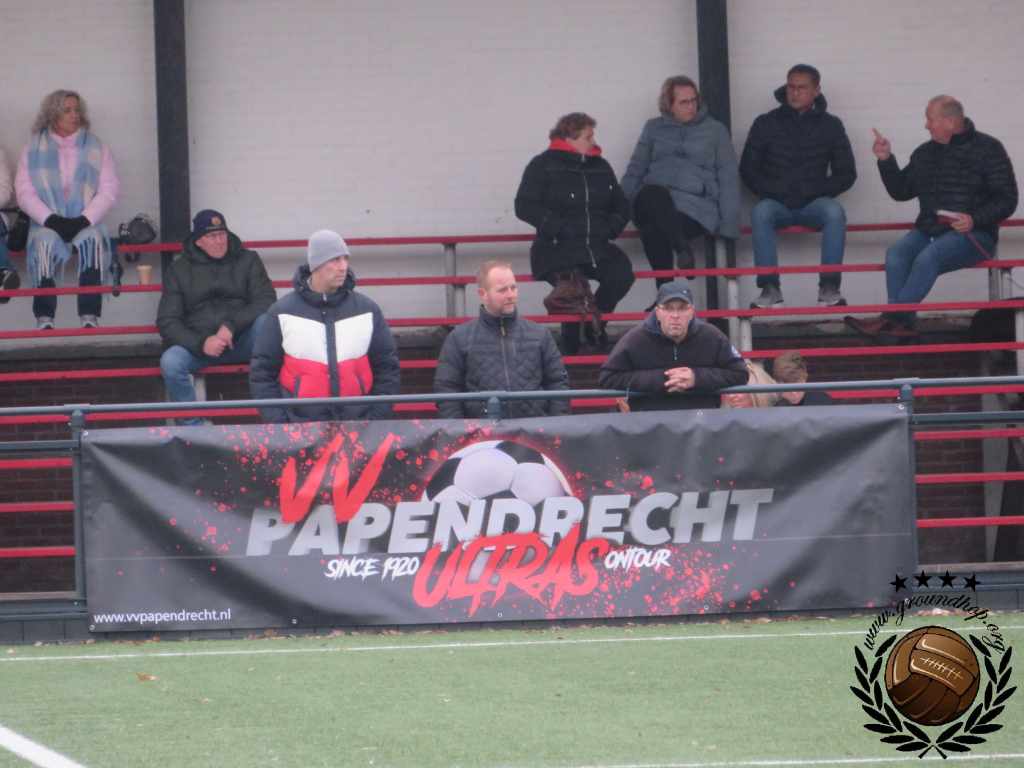 Aangekomen bij het sportpark, waar we met de auto bijna het veld op kunnen rijden, is in ieder geval wel duidelijk dat de resultaten van DCV (misschien ook in combinatie met het wat gure weer vandaag) geen publiekstrekker zijn in Krimpen. Wat hier verder te beleven valt is ons dan ook weer een raadsel, maar mensen schijnen wat beters te doen te hebben hier. Ook op het veld is meteen duidelijk dat we hier niet met een sterrenensemble te maken hebben. Ook de gasten uit Papendrecht verkeren niet in al te beste doen en samen maken deze 22 mannen er een onogelijk potje voetbal van.