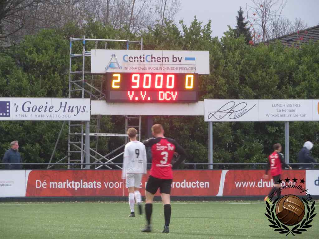 In de tweede helft gaat de wedstrijd verder waar deze gebleven was. Een nieuw teken aan de wand dat beide ploegen ook echt niet beter kunnen dan dit. De enige hoop op een goal ligt dan toch verscholen in een doodspelmoment en godzijdank volgt deze dan ook. DCV krijgt een penalty en deze wordt keurig benut. DCV staat op voorsprong en voor het eerst lijkt er misschien wel een winstpartij in te zitten dit seizoen. Als enkele minuten later ook nog de 2-0 valt, lijkt dit – gezien de krachten van Papendrecht – een zekerheidje te worden. De ontlading bij het laatste fluitsignaal is dan ook groot. Het puntentotaal van DCV gaat in één middag keer 2,5. De laatste plaats is nog niet verlaten, maar het gat naar de nummer 13 Oranje Wit en de nacompetitieplek van Sparta bedraagt nog “maar” 4 en 5 punten.
