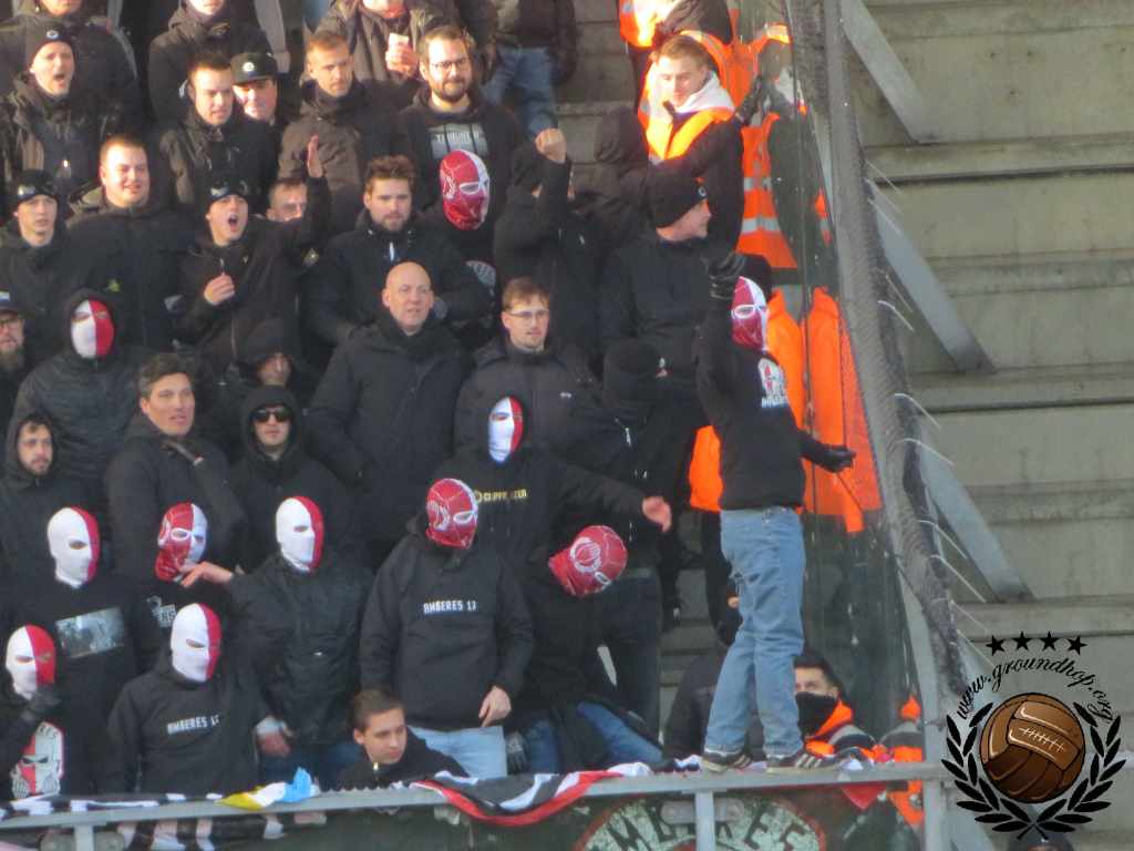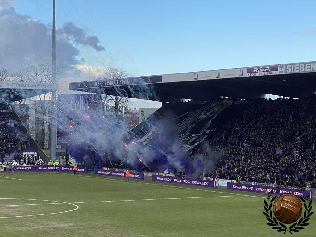 Afgelopen seizoen promoveerde Beerschot uit de Challenger Pro League naar de Jupiler Pro League. Onder leiding van Dirk Kuijt heeft de paars-witte tak van Antwerpen nu alle moeite om het hoofd boven water te houden in de hoogste divisie. In de eerste seizoenshelft werden slechts 12 punten bij elkaar gesprokkeld en dat is precies de helft van wat Cercle (op de laagste veilige plaats) heeft verzameld. De kans op lijfsbehoud lijkt dan ook niet al te groot voor Beerschot en dus besluit de aanhang van Antwerp in stemmig zwart naar de wedstrijd te komen. Naar “de begrafenis van Beerschot” zoals ze het zelf vooraf noemde. Er zijn 700 man meekomen uit Deurne en die reizen met 12 bussen richting het Kiel.