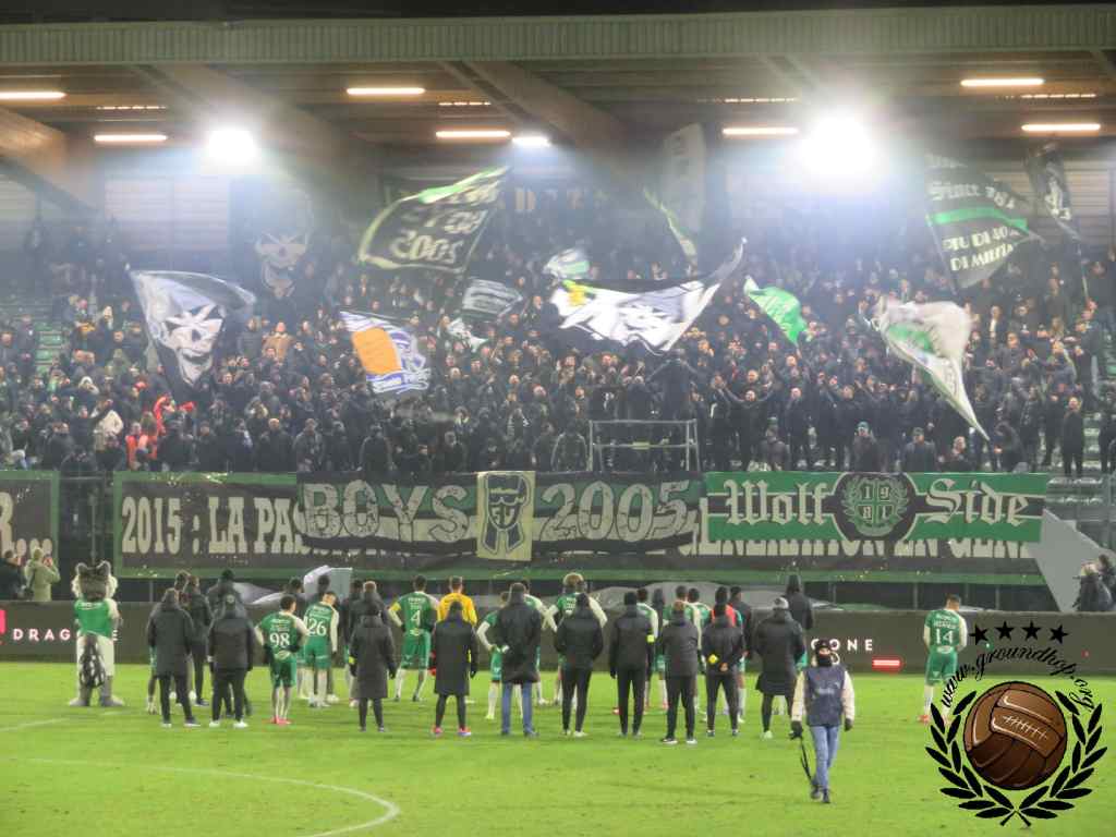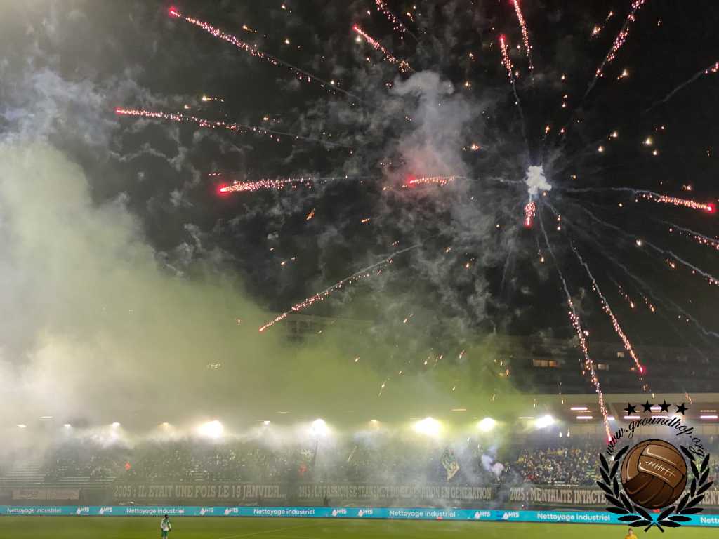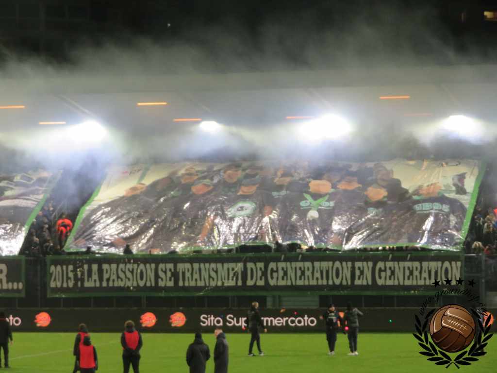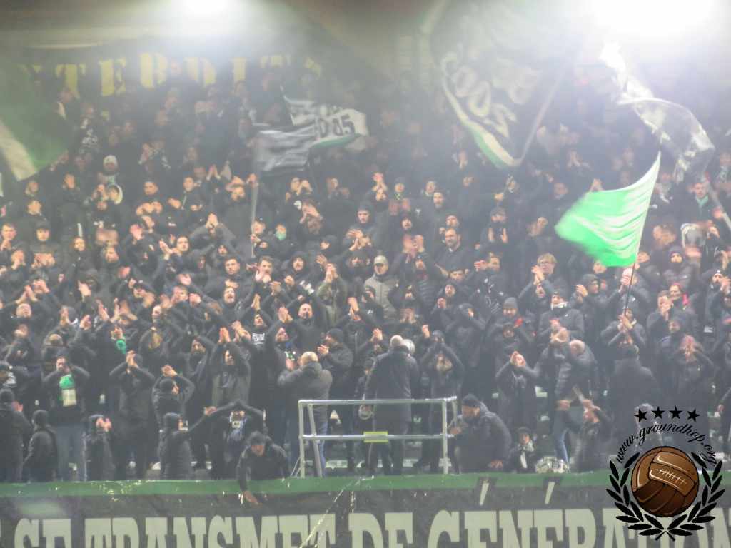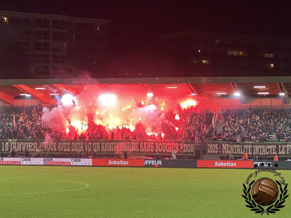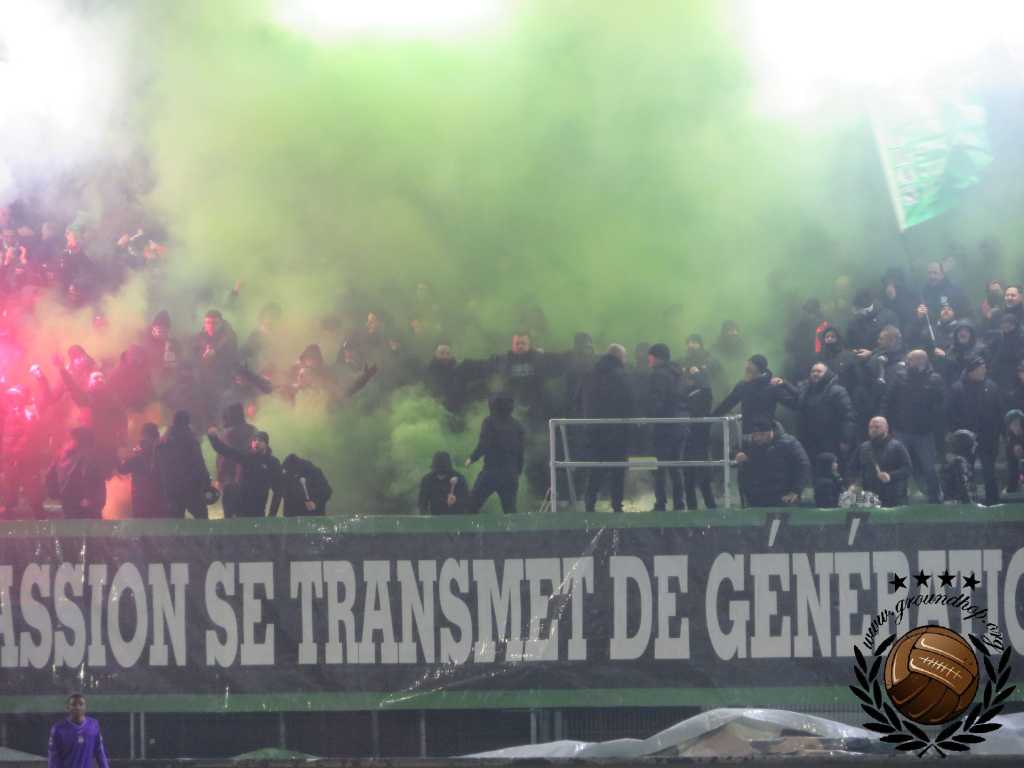 Vol goede moed trotseren we dan ook de winterse vrieskou voor een afscheid van Tivoli en een hele hoop vuurwerk. De wedstrijd van vandaag is tegen de RSCA Futures, dus daar hoeven we het niet voor te doen. Gelukkig hoeven we niet lang op de vuurwerkshow te wachten. Bij opkomst toont Green Boys een drie delige tifo die het ontstaan, 10 jarig bestaan en 20 jarig bestaan van de groep toont. Zodra de doeken verdwijnen komt – zoals verwacht – het vuurwerk te voorschijn. Eerst alleen rook en fakkels, wat de scheidsrechter nog accepteert. Even later gaan er ook shells de lucht in en dan is de scheids er klaar mee. Na een kleine minuut spelen ligt het spel alweer stil.