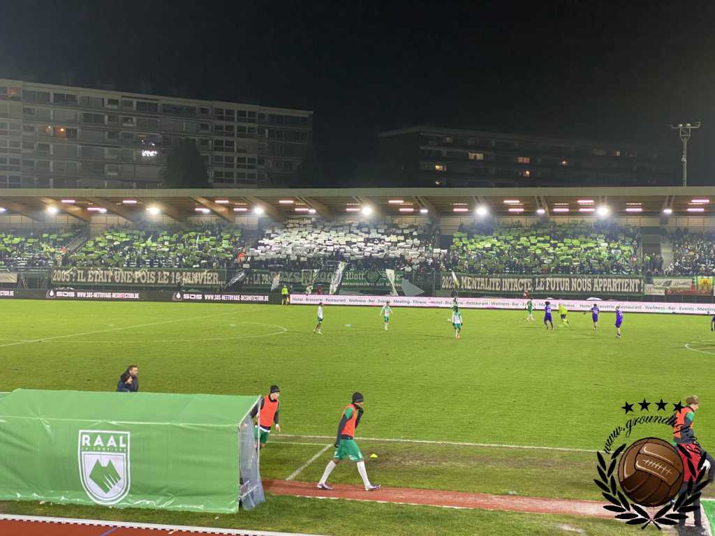 RAAL zet – gelukkig voor de feestvierende supporters – al snel de zaken recht. In de twaalfde minuut wordt het gelijk en vlak voor rust ook nog 2-1. Na rust komt Anderlecht weer op gelijke hoogte, in een vermakelijk duel. Green Boys organiseert nog een tifo, maar die komt niet helemaal goed uit de verf. De tribune is onvoldoende bezet om de actie met gekleurde vellen te laten slagen. Daarnaast lijkt een doek, dat over het vak had moeten komen, omgedraaid over het vak te gaan, waardoor het geheel er nogal wat komisch uitziet.