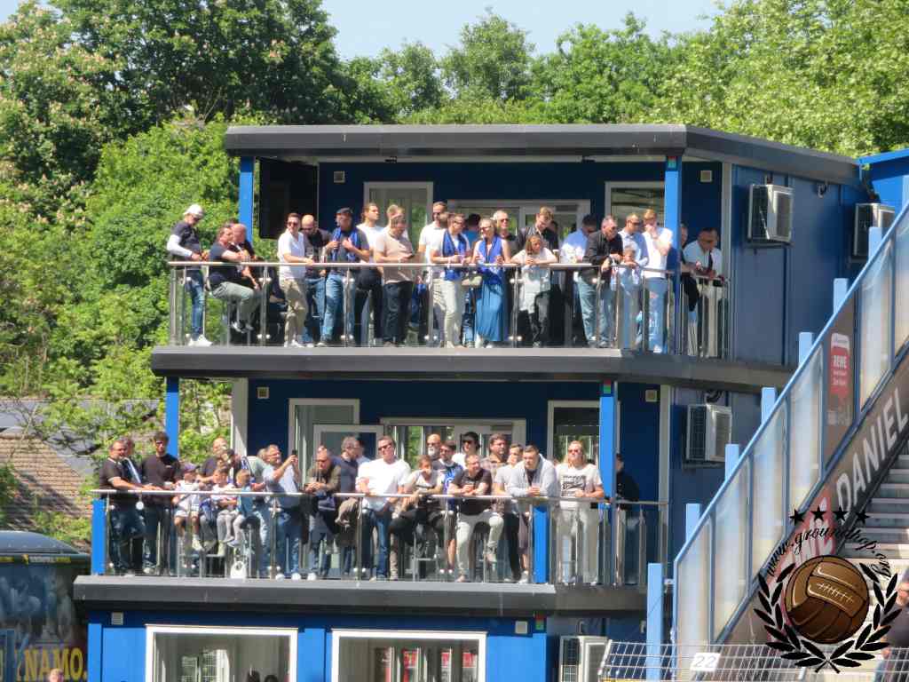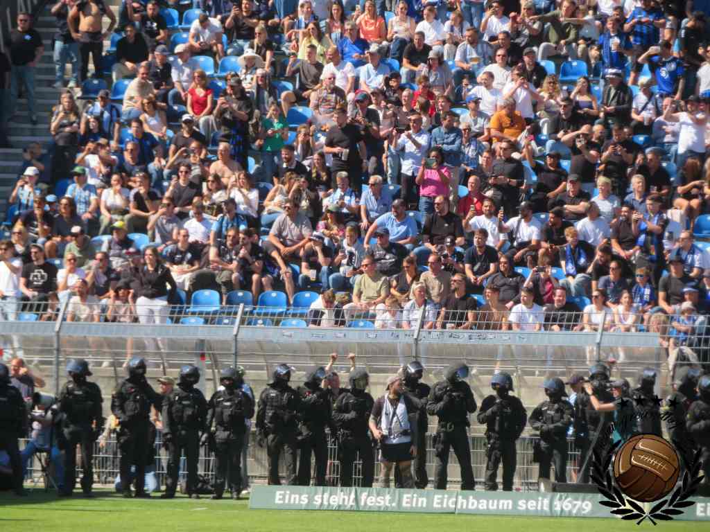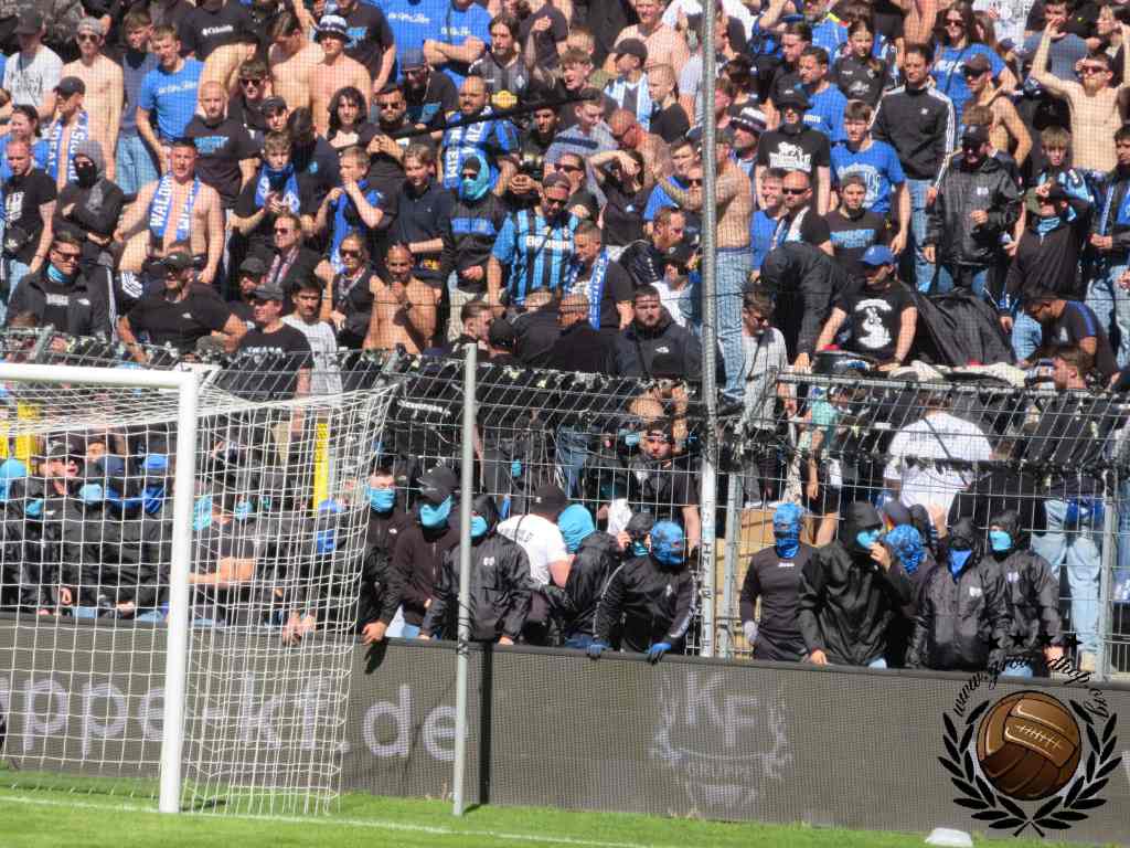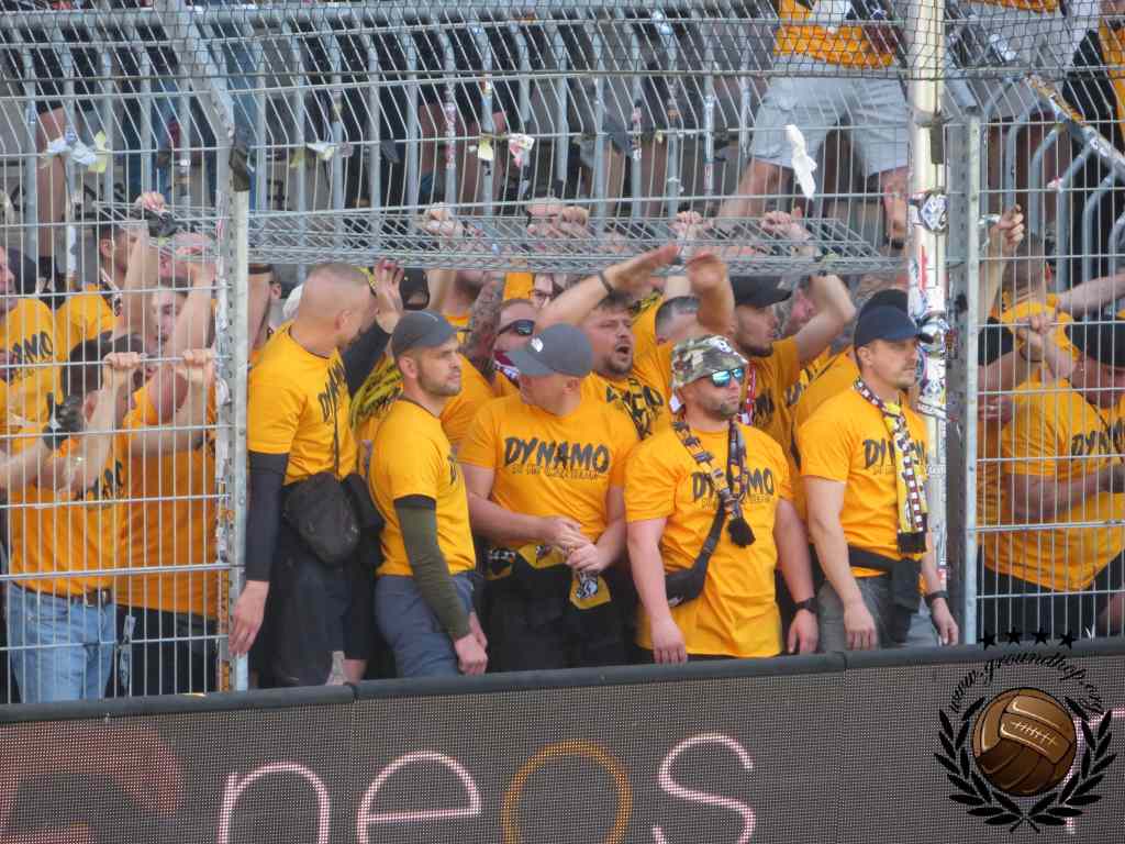 Zo zijn we getuige van een feestje aan beide kanten. Waldhof is blij dat het nog een jaar verzekerd is van 3. Liga. Dresden is daarentegen juist blij de 3. Liga te ontstijgen en zingt: dreite Liga, nie mehr, nie mehr. Gefeliciteerd aan beiden. Het was een mooie middag.