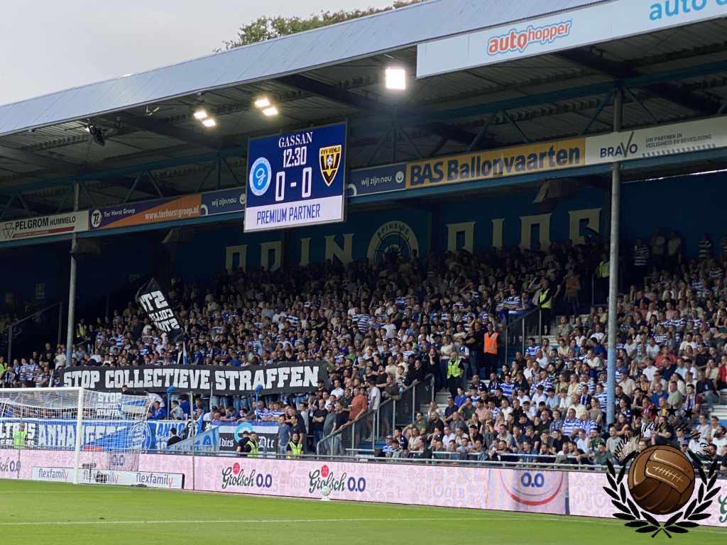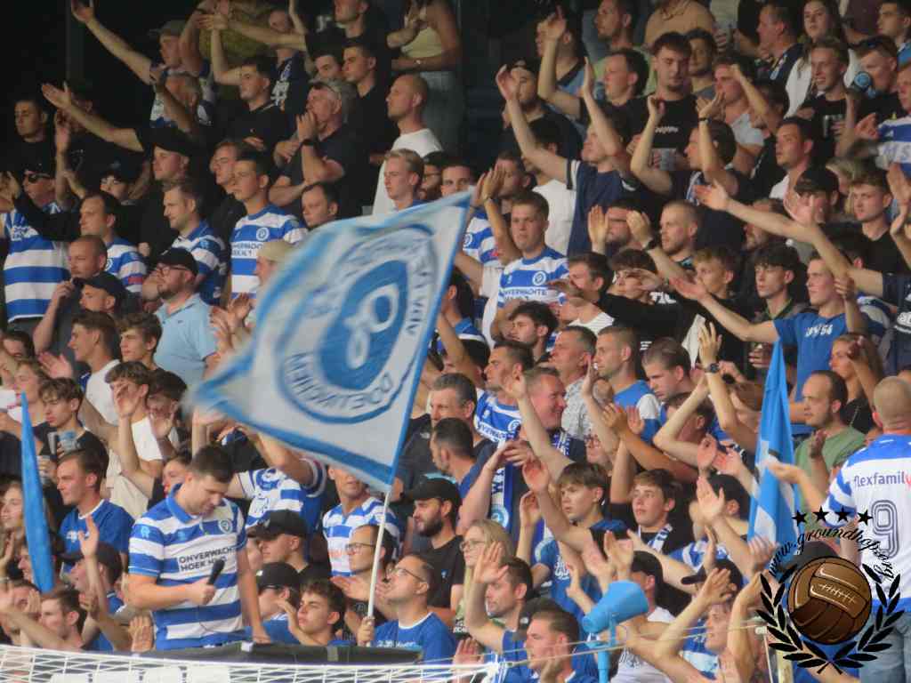 Met de ‘sfeer op de tribunes’ zit het komende tijd dus wel goed in Doetinchem. Nu nog ‘strijd binnen de lijnen’ en de club kan hopelijk weer gaan meestrijden om de plekken voor promotie. Vandaag wordt in ieder geval een goede eerste stap gezet. Een fris en leuk voetballend De Graafschap is VVV Venlo met 3-2 de baas. De sfeer is 90 minuten lang goed en de mannen op het veld tonen de strijd die ze in de Achterhoek graag zien. Er mag ook een eervolle vermelding naar een goed gevuld uitvak van Venlo, inclusief fraaie sfeeractie.