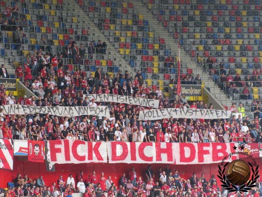 In de tweede helft komen de ultra’s van Kaiserslautern met hun protest tegen de DFB.